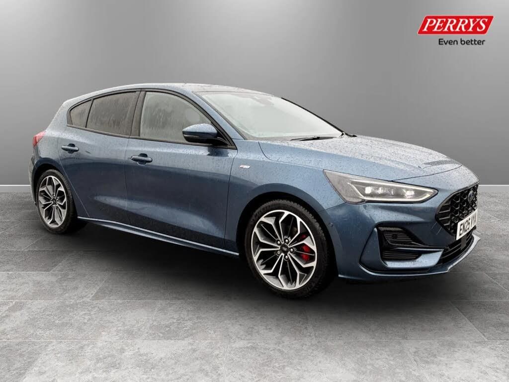 12.3" Digital instrument cluster,Bluetooth system,Digital clock,Easy fuel capless refuelling system,Eco mode,Ford SYNC4 Nav with 13.2'' touchscreen, DAB, Emergency Assistance, Apple Carplay & Android Auto, B&O Premium Audio with 10 speakers, FordPass Connect,Lane keeping system - lane keeping alert and lane keeping aid,PAS,Rev counter,Selectable drive mode,Service interval indicator,Trip computer,Wireless charging pad,Sports tuned suspension,2 USB ports,Auto headlamps (on/off),Body coloured door handles,Electrically operated front and rear windows with one touch opening and closing,Electrically operated heated power fold door mirrors with puddle lamp with side indicators,Front variable intermittent wipers with electric wash,Heated rear window,LED daytime running lamp,LED rear lamps,LED third brake light,Polished twin tailpipe,Privacy glass,Quickclear heated windscreen,Rain sensor,Rear side wing doors,Tailgate wash/wipe,Unique ST-Line grille, full bodystyling kit, and large body coloured rear roof spoiler,3 rear headrests,3 seat bench in 2nd row,Dual zone electronic air temperature control,Full sensico premium upholstery,Height adjustable front headrests,Isofix child seat preparation,Load through ski hatch,Manual 2-way passenger seat adjust,Power 4-way driver seat adjust, with power lumbar adjust,Reach + rake adjustable steering column,Single front passenger seat,ST-Line Design pack - Focus,Winter pack - Focus,3x3 point rear seatbelts,ABS+Electronic Brake force Distribution,Auto hold function,Driver airbag,EDL traction control,Electronic parking brake,Electronic stability control,Front and rear seatbelt reminder,Front inertia reel height adjustable seatbelts with pre-tensioners,Front passenger airbag,Front side airbags,Passenger airbag deactivate switch,Post collision braking,Pre collision assist with autonomous emergency braking and pedestrian/cyclist detection,Remote/power child rear door locks,Side curtain airbags,Three rear inertia reel lap/diagonal seatbelts,Tyre pressure monitoring system,Keyless entry and keyless start,MyKey system,Remote central locking & engine immobiliser,Thatcham alarm with power door dead locks,18" 5x3 spoke pearl grey high gloss machined finish alloy wheels with mini spare wheel,Blind Spot Information System,Chrome Blue,Driver Assistance Pack,Dynamic Matrix LED Headlights including Glare Free Lighting,Head-Up Display,Panoramic Roof - Openable,Parking Pack