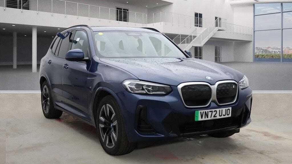 19in Alloy Wheels - Aerodynamic - Jet Black with Bi-Colour Inserts, Active Protection, Adaptive LED Headlights, Adaptive Suspension, Air Breathers with BMW i Logo, Air Conditioning - Automatic, Airbags - Driver, Airbags - Front Side for Driver and Passenger, Airbags - Head - Front and Rear, Airbags - Passenger, Ambient Lighting, Attentiveness Assistant, BMW Connected Package Professional, BMW ConnectedDrive Online Services, BMW Legal Emergency Call, BMW Live Cockpit Professional, BMW TeleServices, Blue Ring Around BMW Logos, Brake Energy Regeneration, Brake Pad Wear Indicator, Bumper System Front and Rear - Replaceable Deformation Elements for Impacts Up to 15kmh, Central Locking Switch for All Doors - Fuel Filler Cap - Luggage Compartment, Charging Cable - Mode 3 - 5m, Check Control Warning System, Child Seat ISOFIX Attachment - Rear, Childproof Locking System - Rear Doors, Condition Based Service, Crash Sensor, Cruise Control with Brake and Speed Limiting Function, DSC - Dynamic Stability Control Plus, Deletion Lumbar Support-Width Adjustment Passenger Side, Door Handles - Body Colour, Driving Assistant Professional, Electric Memory Seats, Electric Windows - Front, Enhanced Bluetooth with Wireless Charging, Extended Storage, Exterior Mirrors - Electrically Folding with Anti Dazzle, Exterior Trim - High-Gloss Shadowline, Front Bumper - M Sport with iX3 Specific Design with Blue Contents, Front and Rear Parking Sensors, Galvanic Embellisher for Controls, Headlining - M Anthracite, Headrests - All Seats, Heat Protection Glazing with Green Tint, Heated Seats for Driver and Front Passenger, Heated Steering Wheel, High-Beam Assistant, Instrument Panel in Sensatec, Integrated Owners Handbook, Interior Rear-View Mirror with Automatic Anti-Dazzle Function, Interior Trim - Aluminium Rhombicle with Pearl Chrome, Luggage Compartment Lights, M Aerodynamic Exterior, M Badging on Front Side - Left and Right, M Sport Leather Steering Wheel, M Sport Package, Model Logo - Tailgate - Left, Model Specific Design Elements, Panoramic Glass Sunroof, Parking Assistant, Personal Profile, Power Socket - 12V, Power Steering - Electric, Preparation for Adaptive M Suspension, Rear Centre Armrest including Two Cupholders, Rear Diffuser in Blue, Rear Window Wiper, Reversing Assist Camera, Roof Rails - Black, Roof Rails - Shadow Line High Gloss - Black, Safety Battery - Terminal Clamp, Seat Backrest Adjustment for Rear Seats, Seat Backrest with Width Adjustment, Seats - Front Sports, Side Impact Protection, Split Folding Rear Seat, Sun Protection Glass, Sun Visors with Vanity Mirrors and Ticket Holder, TPMS - Tyre Pressure Monitoring System, Third Brake Light Using LED Technology, Three-Point Seat Belts - All Seats, Two Tone Horn, Tyre Repair Kit, Visible VIN, Warning Triangle, Welcome Lighting, eDrive Exterior Sound, Vernasca Leather - Black with Blue Contrast Stitching