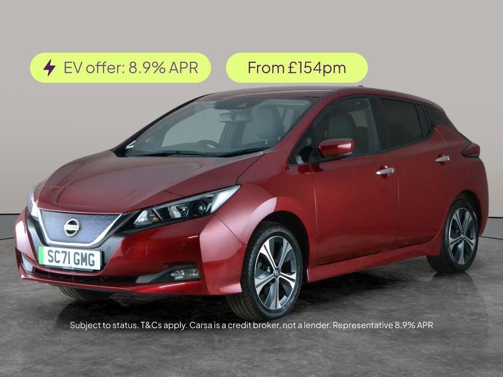 Experience the future with the Nissan Leaf, finished in a striking red. Enjoy optional extras like Apple CarPlay, Sat Nav, and the Heat Pack for added comfort. With half leather seats, keyless start, and 17in alloy wheels, this Leaf stands out from the crowd. Stay safe on every journey with Intelligent Lane Intervention, Blind Spot Assist, Lane Departure Warning, and cruise control. Air conditioning keeps you cool, and a charging lead is included for all your electric adventures. 4 services recorded, last serviced on 12/02/2026 at 57,831 miles. MOT to 14/02/2027. Visit our website for service history, online valuation, full vehicle specification plus multiple images. Any feature/option specified here is from 3rd party data. We cannot guarantee the accuracy of any specification supplied by a 3rd party. We recommend that you physically check the specification of the vehicle on site prior to purchase. This information does not form part of the buying contract. Terms & Conditions apply. We have over 2,000 cars available from our 10 national branches, check our website to see all our stock. Our Trustpilot rating is 4.4/5 with over 9,000 reviews.