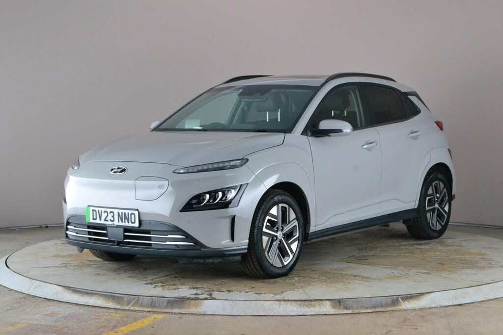 Experience the future with this stunning grey Hyundai Kona Electric SUV. Enjoy premium touches like a head-up display, sunroof, plush leather seats that are both heated and cooled, and an advanced navigation system. Stay connected with Apple CarPlay, while keyless entry, a heated steering wheel, and electric seats enhance comfort. Safety comes first with blind spot assist and lane departure warning, plus manoeuvring is effortless thanks to a reversing camera and bright LED headlights. Perfect for those seeking style, innovation, and peace of mind. 2 services recorded, last serviced on 01/10/2025 at 40,555 miles. MOT to 31/03/2026. Visit our website for service history, online valuation, full vehicle specification plus multiple images. This vehicle is VAT qualifying. Any feature/option specified here is from 3rd party data. We cannot guarantee the accuracy of any specification supplied by a 3rd party. We recommend that you physically check the specification of the vehicle on site prior to purchase. This information does not form part of the buying contract. Terms & Conditions apply. We have over 2,000 cars available from our 10 national branches, check our website to see all our stock. Our Trustpilot rating is 4.4/5 with over 9,000 reviews.