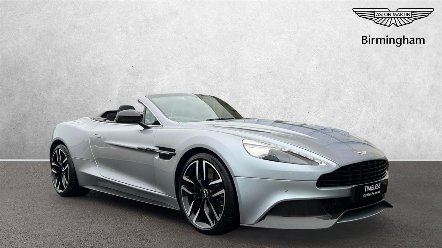 AML Special Sky Fall Silver paint on this stunning Aston Martin Vanquish Volante with just 15,000miles on the clock and over 20K of Optional Extras. Rare Skyfall Silver Aston Martin Vanquish Volante with just over 15,000miles covered and 3 owners from new. Fitted with a contrasting Obdisian Black Interior and over 20K of amazing Optional Extras including One 77 Style Steering Wheels, Gloss Carbon Fibre Side Strakes, Shadow Bronze Jewellery Pack, 10 Spoke Gloss Black Diamond Turned Alloy Wheels, Matte Black Exhaust Tailpipe, Gloss Carbon Fibre Mirror Caps, Black Vaned Front Grille, Ventilated Seating, Black Brake Calipers, Piano Black Interior Trim Pack and more. Full Aston Martin Service History, serviced just 200 miles ago and 12 Months Aston Martin Premium Warranty. A real head turner in a classic colour combination ..