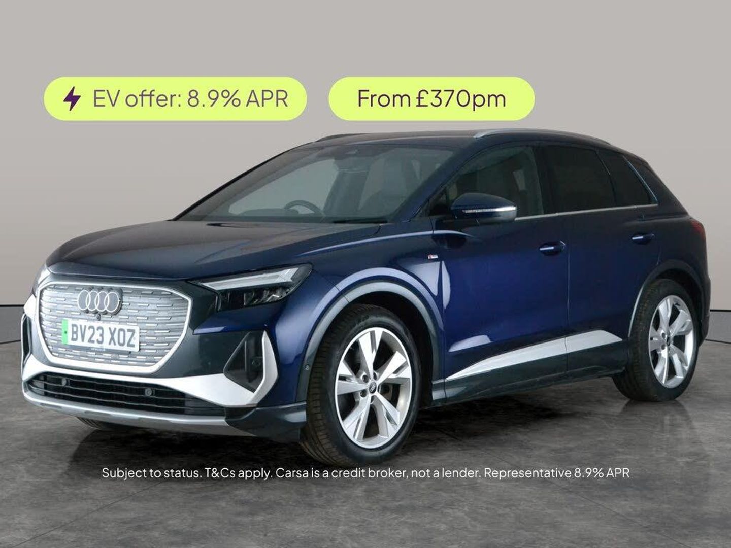 Upgrade your drive with this striking blue Audi Q4 E-tron. Enjoy the premium sound system, heated seats for ultimate comfort, and stunning LED headlights. Stay safe and stress-free with adaptive cruise control, lane departure warning, and traffic sign recognition. Navigate easily with MMI Navigation Plus and Sat Nav, and relax with parking sensors front and rear. This electric SUV combines cutting-edge features with a smooth automatic drive for a refined, eco-friendly experience. 2 services recorded, last serviced on 15/02/2026 at 39,714 miles. MOT to 15/02/2027. Visit our website for service history, online valuation, full vehicle specification plus multiple images. Certain features listed may be available via subscription packages at extra costs, please consult with Audi for details. This vehicle is VAT qualifying. Any feature/option specified here is from 3rd party data. We cannot guarantee the accuracy of any specification supplied by a 3rd party. We recommend that you physically check the specification of the vehicle on site prior to purchase. This information does not form part of the buying contract. Terms & Conditions apply. We have over 2,000 cars available from our 10 national branches, check our website to see all our stock. Our Trustpilot rating is 4.4/5 with over 9,000 reviews.
