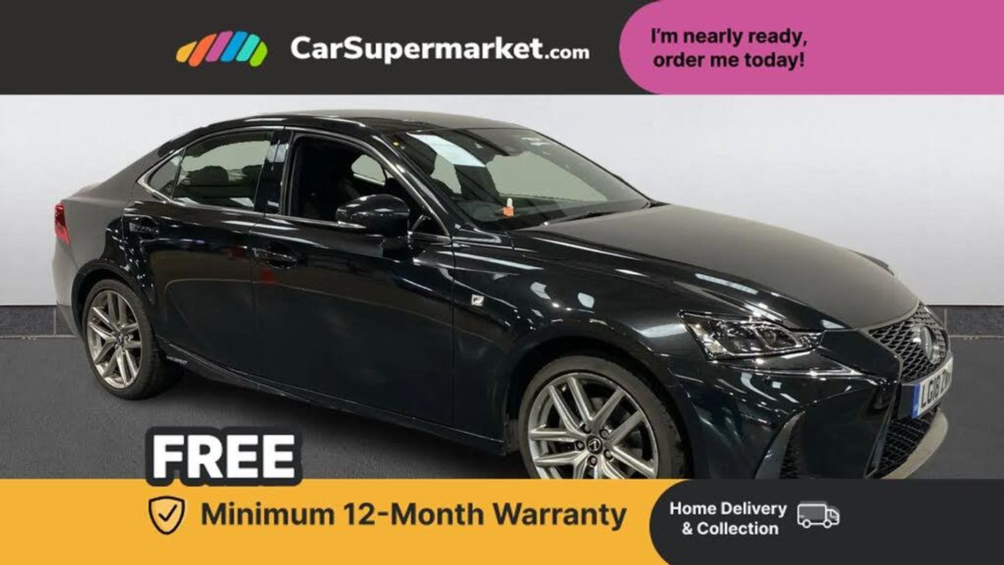 7" colour screen,Adaptive cruise control,Analogue clock,Bluetooth telephone connectivity,Drive mode selector,Front/rear Parking distance control,Lane keep assist,Push button starter,Rear view camera,Speed sensitive power steering,Traffic sign recognition,Trip computer,Sports suspension,VDIM,Vehicle Stability Control (VSC),6 speakers,Aux-in socket,DAB Digital radio,Radio/CD,USB socket,Electric front/rear windows,Electric/heated/folding door mirrors,Electrochromatic rear view mirror,F-Sport styling kit,Headlight washers,High beam assist,LED daytime running lights,LED Headlights,Rain sensitive windscreen wipers,3 spoke multi-function steering including paddle shift,60/40 split folding rear seat,8 way electrically adjustable front seats,Active sound control,Aluminium scuff plates,Aluminium sports pedals,Coat hooks,Driver's lumbar support,Driver/passenger sunvisors and vanity mirrors,Dual climate control air conditioning system,Fabric/Tahara synthetic leather upholstery,Front centre armrest with storage,Front door pockets,Front headrests,Front sports seats,Heated front seats,Isofix standard child seat restraint mounting,Kneepad,Leather gear lever,Leather steering wheel and gear knob,LED interior illumination,Rake/reach adjustable steering wheel,Rear armrest with 2 cupholders,Rear headrests,3 point rear seatbelts,ABS+EBD+Brake assist,Active bonnet,Drivers knee airbag,Electronically controlled braking,Front seatbelt pretensioners,Hill start assist control (HAC),Passenger airbag deactivate switch,Passenger knee airbag,Pre crash system,Sway warning system,Traction control,Tyre pressure monitoring system,Immobiliser,Intrusion sensor and alarm,Smart keyless entry,Aluminium inlays,18" 10 spoke alloy wheels,Tyre repair kit