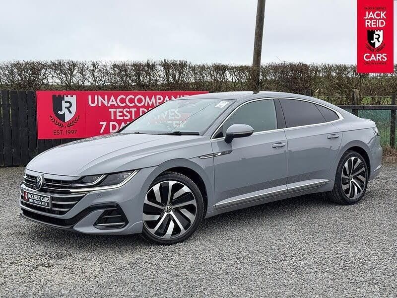 Check out what's all included in this 2022 Volkswagen Arteon 2.0 TSI R-Line 5dr DSG:. Panoramic tilt and slide sunroof.. Adaptive cruise control with speed limiter.. App connect including wireless CarPlay.. 10.25" Digital cockpit.. Apple or Android smartphone compatibility.. Heated front sports comfort seats.. Keyless entry system.. Sat nav system.. Front and rear parking sensors.. Driving profile selection.If you like the look of this car and would like to come for a look or an unaccompanied test drive feel free to call down anytime or get in touch to make an appointment. We are open 7 days a week for your convenience!We have one of the largest numbers of cars for sale in our area with up to 200 cars in stock ready to view! We stock a variety of makes and models such as Audi, BMW, Seat, Range Rover, Mercedes, Jaguar and many more!All our cars come warranted by Jack Reid Cars meaning that we make all our decisions in house unlike unreliable warranty companies with too many terms and conditions.We look forward to hearing from you!This car is shown with an optional new alloy wheel and tyre upgrade or it can be returned to the standard wheels, whichever suits you best. Please contact sales for pricing.