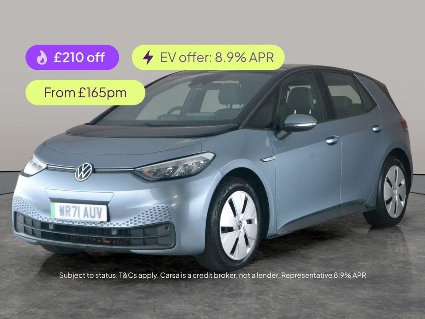 Experience electric driving at its best with the Volkswagen ID.3. This blue hatchback comes equipped with adaptive cruise control, heated seats, and brilliant LED headlights for a modern motoring feel. Enjoy seamless connectivity with Apple CarPlay, Bluetooth audio streaming, and wireless charging for your devices. Effortless parking is yours with front and rear sensors, while sat nav and digital climate control keep journeys comfortable. Discover smart features like driving modes and the Car-Net App-Connect, all in a stylish, practical package. 2 services recorded, last serviced on 25/09/2025 at 22,477 miles. MOT to 24/09/2026. Visit our website for service history, online valuation, full vehicle specification plus multiple images. This vehicle is VAT qualifying. Any feature/option specified here is from 3rd party data. We cannot guarantee the accuracy of any specification supplied by a 3rd party. We recommend that you physically check the specification of the vehicle on site prior to purchase. This information does not form part of the buying contract. Terms & Conditions apply. We have over 2,000 cars available from our 10 national branches, check our website to see all our stock. Our Trustpilot rating is 4.4/5 with over 9,000 reviews.