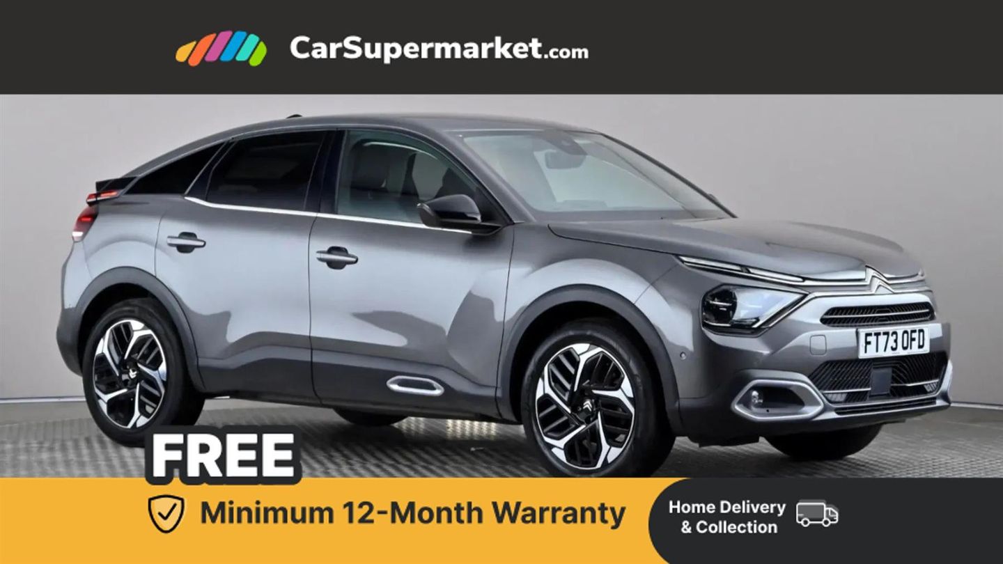 5.5 inch backlit full TFT driver's instrument cluster with LED ambient lighting,Active blind spot detection,Apple car play and Android auto,Citroen connect box emergency and assistance system,Citroen Smart Pad Support - integrated support for attaching a tablet computer for front passenger,Driver's head-up display,Electronic Power Steering (EPS),Front, rear and lateral parking sensors,In-crash braking,My Citroen Drive Plus: 10" high-resolution touchscreen user interface, controlling media, connectivity, vehicle settings + connected nav,Speed limiter,Tailgate,Voice commands,Advanced comfort suspension - double hydraulic stops on front and rear suspension,6 speakers,Bluetooth telephone and audio streaming,DAB Digital radio,3rd brake light,Automatic headlights,Body colour bumpers,Body colour door handles,Boot spoiler,C-Series badging on front wing,Dark tinted rear windows and side windows with chrome detail,Electrically heated, folding and adjustable external rear view mirrors with courtesy lighting,Electrochrome interior rear-view mirror with automatic day-night switching,Front and rear electric windows,Gloss black rear skirt,Intelligent beam headlights,LED daytime running lights in V signature,LED front fog lamps with static cornering function,LED front headlamps,Perla Nera black painted external rear view mirrors,Rain sensing automatic front windscreen wipers,Rear side wing doors,Rear wiper,Shark fin roof aerial,Welcome and goodbye lighting,12V power outlet, 1x USB Type-C socket & data connection, 1x USB Type-A socket at 1st row + 1x USB Type-A socket , 1x USB Type-C socket in 2nd row,3 rear headrests,3 seat bench in 2nd row,Alcantara and black leather effect textile seats,Boot light,Dashboard tray in front cabin,Deluxe leather steering wheel with two command blocks,Driver and passenger sunvisors with illuminated vanity mirrors,Dual zone automatic air conditioning,Electrically heated front seats,Front and rear LED interior lighting,Front head restraints,Heated steering wheel,Height adjustable driver's seat with adjustable lumbar support,Height adjustable front passenger seat,Height and reach adjustable steering wheel,Map pockets in rear of front seats,Raised centre console with armrest and two cup holders,Rear central folding armrest with cupholders and ski hatch,Single front passenger seat,Split folding rear seats,Two position boot floor,XXL storage in front cabin,High level acoustic insulation pack - C4/C4 X/e-C4 X,Safety pack plus - C4/C-Series Edition/Max,3x3 point rear seatbelts,ABS,Driver and front passenger airbags,Electric parking brake,ESP,Front seatbelt pretensioners,Hill start assist,Manual child lock in second row,Manual deactivation of front passenger airbag,Row 1 and 2 curtain airbags,Row 1 side thorax airbags,Seatbelt unfastened on the move warning,Tyre underinflation detection,Anti-theft alarm (volumetric protection),Immobiliser,Keyless entry and start,Remote locking with deadlocks,18" Bi-tone diamond-cut aeroblade alloy wheels with anti-theft locking wheel nuts,Puncture repair kit with compressor