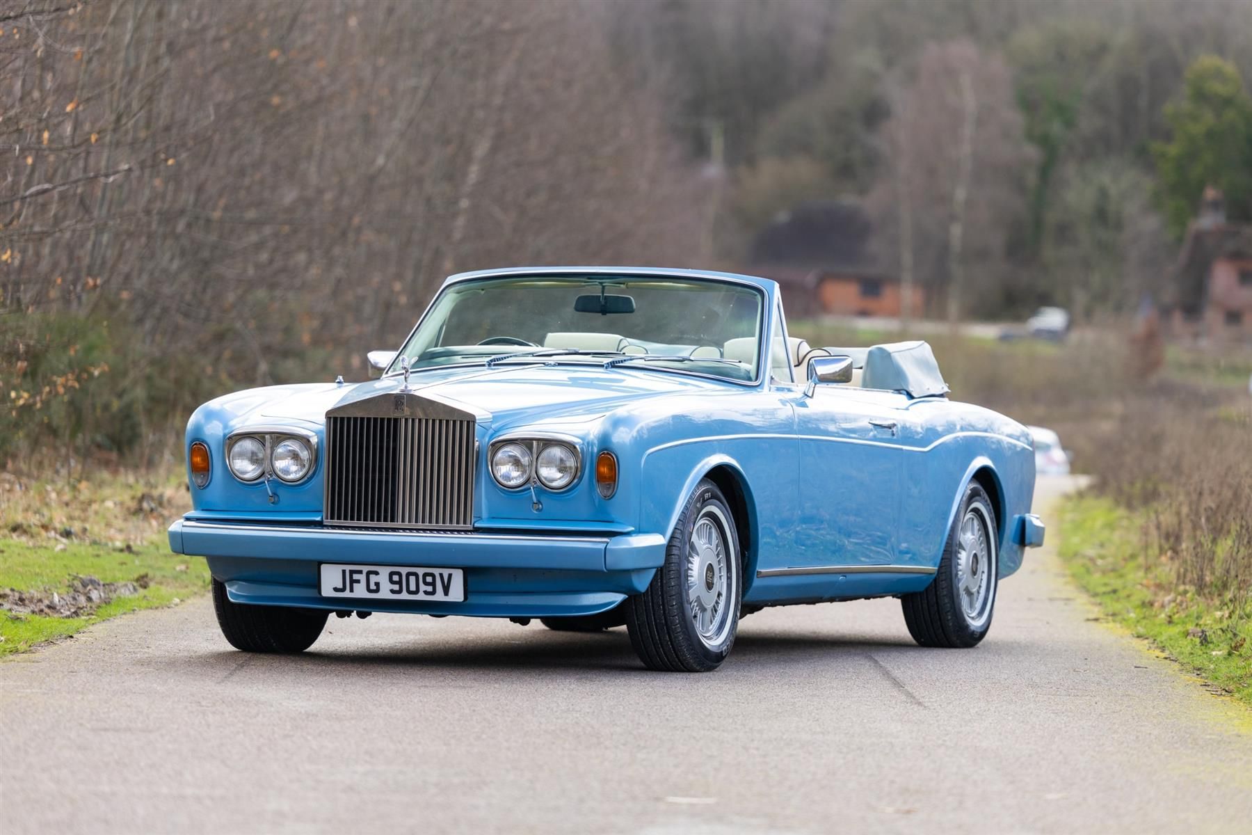 Recent major service and maintenance including new tyres all round Bills totalling over £25,000 present in the history file This 1980 Rolls-Royce Corniche Convertible is a hand-built luxury grand tourer, paired with an automatic transmission. Featuring the model's signature long bonnet, chrome detailing and fully electric soft-top hood, the Corniche combines traditional Rolls-Royce craftsmanship with open-top touring capability, offering a refined and highly collectible classic convertible. This wonderful example is offered in blue coachwork with a cream leather interior and looks fantastic. Registered new on 22nd April 1980 it comes complete with its original registration number 'JFG 909V' and is presented in good condition throughout, the paintwork shows little sign of age, and the interior is well presented and benefits from an upgraded radio. Accompanying the car is a sizeable history file which contains many bills and invoices totalling over £25,000! Notable works undertaken include fitment of an upgraded fuel injected engine, and on two occasions a replacement speedometer (The records show the true mileage to be around 99,610). Also included in the file are many MoT records, and servicing and maintenance invoices undertaken by specialists. Recently in February 2026 this Corniche was treated to further maintenance and a major service which included replacement spark plugs, an oil and filter change, new suspension spheres fitted to the front end, four new tyres balanced and fitted, and a fresh MoT test certificate valid until March 2026. At this time the Rolls-Royce was also road tested and is reported to be in very good running and driving condition. The car has been used and enjoyed as intended throughout its life and has been entered into various classic car shows, where it has consistently performed very well. Dry stored and always kept trickle charged this fantastic looking example will be driven to the auction by the vendor (circa 65 miles) and is ready to be enjoyed immediately by its new owner. The full history file and more pictures can be sent by email on request - please contact a member of our team for details. This vehicle can be viewed at our Sussex office. Viewing by appointment only.