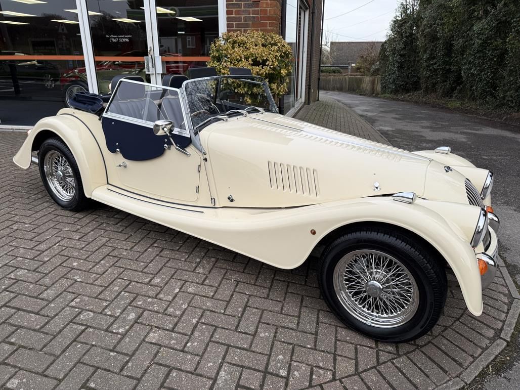 Royal Ivory with Russian Blue Muirhead leather piped Ivory, 2.0 litre Ford Duratec engine with 5-speed manual gearbox, Wide body model, Equipped with Walnut dashboard, Mota Lita wood rim steering wheel with Morgan engraved horn push, Le Mans gear knob, Folding and reclining Sports seats, Heated windscreen, Radio/CD player, Russian Blue sun visors, Elasticated door pockets, Navy Blue carpets piped Blue, Deluxe Navy Blue Mohair weather equipment (Easy Up hood/Side screens with side screen bag), Navy Blue mohair hood tonneau cover with Morgan Wings emblem, Navy Blue mohair side screen bag with Morgan Wings emblem Stainless steel grille, External door handles, Tread rubbers, Navy Blue wing beading, Stainless steel overiders, 3rd brake light, Spare wheel, 15 inch Stainless steel wire wheels, Originally supplied by Richard Thorne Morgan of Reading, Complete with Original leather bound owners book pack including Owners Handbook, Fuse Guide, Morgan Rescue booklet, Original Richard Thorne Morgan Owners folder including original Pricelist, Dealer list, Proforma invoice, Bill of sale, Letters from Richard Thorne Morgan reference new order, New Morgan checklist, Morgan Certificate of Newness, Morgan Certificate of Conformity, Photo of 1st owner collecting the Morgan from the Factory, Leather bound Morgan Factory photographic build album still in box, Various service/parts invoices, Old MOTs and 3 sets of keys with Morgan fobs, Full Morgan service history (16 services), Complete with cherished registration number, A cherished 1 owner example which has covered a mere 6,500 miles from new.