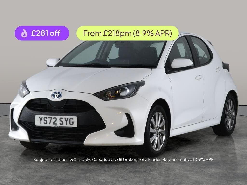 Discover the Toyota Yaris Hybrid in stylish white, featuring slick 16in alloy wheels and a seamless automatic drive. Enjoy top tech with Apple CarPlay, a reversing camera, and digital climate control for year-round comfort. Stay safe and relaxed with adaptive cruise control, active lane assist, lane trace assist, and a traffic sign recognition system. Driving modes let you tailor your experience, while Bluetooth connectivity keeps you entertained and connected on every journey. Explore urban life the smart way with this efficient hybrid. 4 services recorded, last serviced on 04/02/2026 at 40,487 miles. MOT to 09/02/2027. Visit our website for service history, online valuation, full vehicle specification plus multiple images. This vehicle is VAT qualifying. Any feature/option specified here is from 3rd party data. We cannot guarantee the accuracy of any specification supplied by a 3rd party. We recommend that you physically check the specification of the vehicle on site prior to purchase. This information does not form part of the buying contract. Terms & Conditions apply. We have over 2,000 cars available from our 10 national branches, check our website to see all our stock. Our Trustpilot rating is 4.4/5 with over 9,000 reviews.
