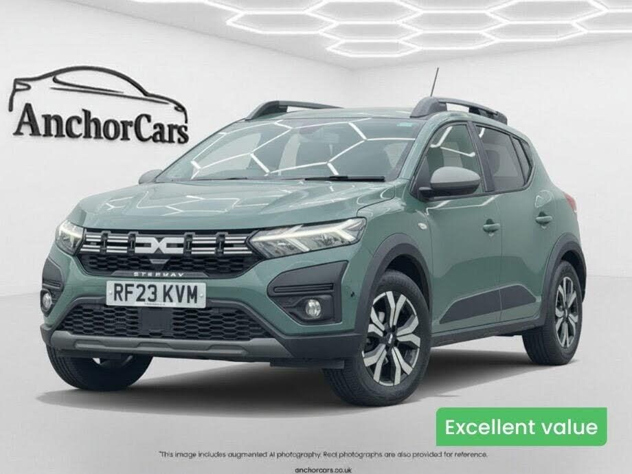 Anchor Cars is proud to present this 2023 Dacia Sandero Stepway 1.0 TCe Journey Hatchback Petrol CVT Euro 6, finished in Green. A modern and versatile five-door hatchback, the Sandero Stepway offers raised ride height styling with everyday practicality, making it an excellent choice for both urban driving and longer journeys. The Journey trim enhances its contemporary appeal with a well-equipped and comfortable interior. (Trim material: cloth) Powered by a 1.0-litre petrol engine producing 90 ps and paired with an automatic CVT transmission, this Euro 6 compliant model delivers smooth, efficient performance. The responsive engine and seamless gearbox combination provide an easy and refined driving experience, ideal for commuting and family use alike. Inside, the cabin is thoughtfully laid out with supportive seating and generous space for passengers, along with a practical boot area suited to daily demands. For further information or to arrange a viewing, please contact Anchor Cars on 0118 9711 799 or visit www.anchorcars.co.uk .