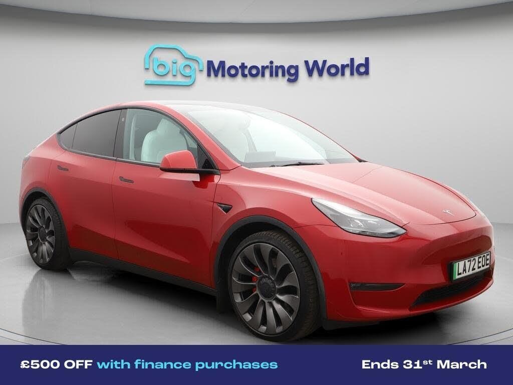 £500 towards your finance depo-Our Tesla Model Y is finished in Red. Specification includes a range of fantastic features including £500 towards your finance deposit, Panoramic Roof, All Wheel Drive, 21'' Alloy Wheels, Leather Seats, Privacy Glass, Heated Seats, Wireless Phone Charging, Rear View Camera, Heated Rear Seats Specification information is supplied by CAPHPI and may vary to the actual car. This data does not form any part of a buying contact. Please check specification prior to purchase in-store. The MOT is valid until December 2026, visit bigmotoringworld.co.uk for more photos, a 360 tour, service history and a free HPI report.Were BIG on peace of mind and this Red Tesla Model Y has completed our comprehensive 200 point inspection and passed all checks. Its ready for you to drive away with immediate collection in-store. We include a 90-day warranty as standard plus an option to extend for up to 3 years.Reserve this car exclusively for you, safely and securely at bigmotoringworld.co.uk, with a fully refundable £99 deposit. Test drive before you buy, with no commitment, no hassle and a completely haggle free experience. Still searching and want to see thousands more cars? We are BIG on choice with over 8000 cars to choose from.Visit our award winning web site bigmotoringworld.co.uk.Were Big Motoring World and were BIG on what matters to you.