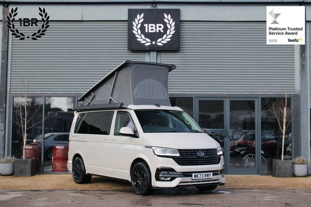 1 Waste Bin in Door Storage Compartment in Cab, 17in Alloy Wheels - 7J Aracaju - Silver, 17in Brake System Front - 16in in Rear, 230V External Inlet with Charging Feature for Vehicle Batteries and Internal 230V Outlet on the Side of the Kitchen Unit, 230V Inverter with Socket on Drivers Seat, ABS - Anti-Lock Braking System, ASR - Anti Slip Regulation, Adaptive Cruise Control ACC including Front Assist and City Emergency Braking, Air Conditioning - 3-Zone Climatronic with 2nd Evaporator-Auxiliary Heater-Air Conditioned Headliner and Additional Passenger Control, Anti-Theft Alarm System with Interior Monitoring in Cab - Backup Horn and Tow-Away Protection, Armrest for Both Cab Seats, Auto-Dimming Breakaway Interior Rearview Mirror, Automatic Headlight Activation with Separate LED Daytime Running Light with Manual Coming Home - Automatic Leaving Function, Automatic Headlight Range Control, Awning - Housing and Rail in Black, Bed Extension for Rear Bench Seat, Body-Coloured Door Mirrors - Handles - Front and Rear Bumper, California Badge on the Front Wing and on the Rear, Camper Control Unit, Camping Table for Inside-Outside - in Sliding Door - and 2 Folding Chairs in Tailgate, Central Locking System with Two Remote Control Keys, Comfort Dashboard with Chrome Elements and Bezels Finished in Black, Crosswind Assist, Cupboards in Graphite Grey, Decorative Inserts - Pewter Wave Grey, Digital Cockpit and Driver Alert System, Door Mirrors - Electrically Adjustable and Heated and Folding, Drivers and Front Passengers Airbags with Front Passenger Airbag Deactivation Switch, EDL - Electronic Differential Lock, ESP - Electronic Stability Programme, Electric Childproof Lock, Electric Windows - Front, Electro-Hydraulic Elevating Roof, First Aid Kit and Warning Triangle, Front Fog Lights with Cornering Lights, Gas Hob with Two Burners, Gas Storage Compartment - Takes 2.8kg Gas Cylinder and Includes Gas Pressure Regulator with Shut-Off Valve, Glovebox - Illuminated, Grab Handles on A-Pillars - on Driver and Front Passenger Side, Headlights - LED with Separate LED Daytime Running Lights, Heated Driver and Front Passenger Seats, Heated Windscreen Washer Nozzles - Front, Hill Start Assist, Illuminated Dash Instruments - Dimmable, Illuminated Sun Visors with Airbag Label on Front Passenger Sun Visor, Interior LED Lighting, Interior Lighting Concept for Camper - Comfort in Passenger Compartment, Lights and Vision Package, Locking Wheel Bolts, Loft Bed with Comfortable Sprung Base Mattress and Child Safety Net, Lumbar Support for Drivers and Front Passenger Seat - Manually Adjustable, Mounting Rails on the Roof - Preparation for Movable Roof Rack, Multi-Function Display Premium with Colour Display, Navigation System Discover Media including Streaming and Internet, Parking Sensors - Front and Rear with Park Assist, Plastic Floor Covering, Power Assisted Steering, Privacy Glass with Heat Insulation, Programmable Air Parking Heater with Radio Remote Control and Auxiliary Heater, Radiator Grille Painted Black with 5 Chrome Trims - Additional Chrome Trim at Lower Radiator Grille, Rear View Camera, Rear Window - Insulating Glass with Rear Window Wiper and Washer System - Not Heated, Red LED Tail Light, Right Side Sliding Door - Power Latching, Seat Belt Warning for Drivers and Front Passengers Seat if Unfastened, Side Assist, Side Step Illumination with California Lettering, Side and Curtain Airbags for Driver and Front Passenger, Single Tone Horn, Sliding Door in Passenger - Compartment - Right, Sliding Window Above Kitchenette and Fixed Window in Rear Passenger Compartment - Right, Sliding Window in Front with Fly Screen and Fixed Window in Rear in Load-Passenger Compartment - Left, Sliding Window in Front with Fly Screen and Fixed Window in Rear in Load-Passenger Compartment - Right, Soft-Folding Grab Handles on Roof Frame, Special Sound Deadening Measures in Cab and Passenger Compartment, Stainless Steel Sink with Height-Adjustable Tap and Removable F