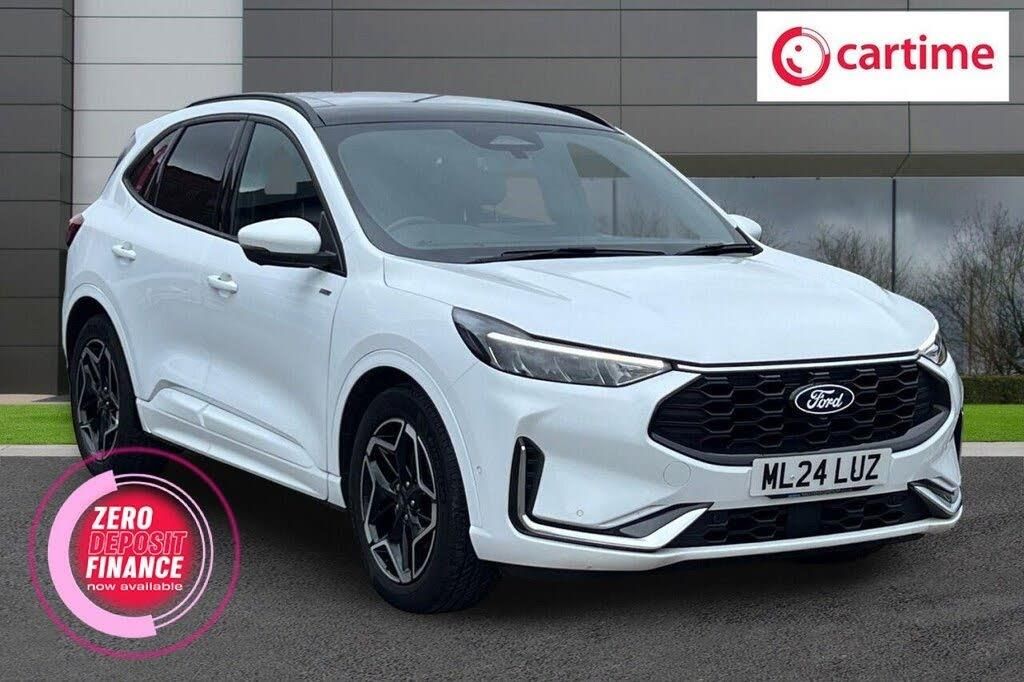 12-Way Ergonomic Power Adjust Driver's and Passenger's Seat, 12v Power Point in Cargo Area, 12V Power Point in Floor Console, 12v Socket - Voltage Regulator, 19in Alloy Wheels - ST-Line- Ebony Black - Machined Finish, 2nd Row Sliding Seats, 360 Degree Camera, ABS - Anti-lock Braking System, Adaptive Cruise Control, Air Conditioning - Electronic Automatic Temperature Control - EATC, Airbag - Driver and Front Passenger Side, Airbag - Front Passenger Deactivation Switch, Airbags - Driver and Front Passenger, Airbags - Front and Rear Side Curtain, Aluminium - Finish Front Scuff Plates with ST-Line Script, Aluminium Foot Pedals - ST-Line Design, Ambient Lighting, Auto Dimming Rear View Mirror, Auto Wipers, Automatic Door Relocking, Black Roof Rails, Centre Console with Electronic Parking Brake, Child Locks - Manual on Rear Doors, Cross Traffic Alert, Digital Colour 12.3in Instrument Cluster, Driver and Passengers Sun Visor with Illumination, Driver Assistance Pack, Dual Exhaust Tailpipes with Unique Brushed Stainless Steel Finish, eCall, Electric Parking Brake with Auto Hold, Electrical Charging Point in Second Row, Engine Immobiliser - SecuriLock, EPAS - Electric Power Assisted Steering, Exterior Door Handles - Body Coloured, Ford Easy Fuel System, Ford Keyfree System - Keyless Entry with Ford Power Starter Button, Ford SYNC 4 Navigation, Front and Rear Bumper - Sporty Body Colour with Rear Ebony High-Gloss Insert, Front and Rear Floor Mats with Red Stitching, Front and Rear Parking Sensors, Front Seats - 2-Way Manual Height Adjust Passive Head Restraints, Front Seats - Drivers and Passengers Seatback Map Pockets, Front Seats - Sports Style V-shape with High Bolster, Front Windows - Laminated Glass, Frozen White, Full LED Headlamps, Gearshift - Automatic - Electronic Rotary Gearshift Dial, Glovebox Lights, Handsfree Power Tailgate, Headlights - Automatic Follow Me Home Lighting, Headlights - Automatic High Beam Assist, Headlights - Levelling System - Manual, Headlights - Unique Bending, Headliner - Sports Dark, Heated and Power Folding Door Mirrors - Puddle Lights - Memory Function - Camera, High-Mounted Brake Light, Kuga Badge, Lane Keeping Aid with Lane Departure Warning, Large Rear Spoiler, LED Daytime Running Lights, LED Fog Lights - Front, Load Compartment - Lights, Load Compartment - Tie Down Hooks, Load Compartment Carpet, Locking Wheel Nuts, Lower Bodyside Moulding - Body Colour, Lower Door Frame Beltline - Black, Mini Overhead Console with Sunglasses Holder Bin, MyKey, Partial Premium Sensico - Black with Red Stitching, Pop-Out Door Edge Protectors, Power Door Deadlocks - Double Locking, Power Door Locks, Power Opening Panoramic Roof, Pre-Collision Assist with Autonomous Emergency Braking, Quickclear Heated Windscreen, Rear Duct on B-Pillar, Rear Lights - LED, Rear Privacy Glass, Rear Seat - 60-40 Split Folding Seats, Rear Seat Centre Head Restraint, Rear Seats - 2-Way Head Restraint Up-Down, Rear Seats - Folding Centre Armrest with Integrated Cup Holder, Rear Seats - Sliding Seat Adjust Tracks - Fore-Aft, Red Brake Calipers, Remote Tailgate Release, Removable Package Tray, Rocker Panel Mouldings - Body Colour - ST-Line Design, Seat Belt - Drivers - Front Passenger and Rear Seat Belt Reminder Alert, Seat Belts - Front 3-Point Seatbelts with Load Limiter, Seat Belts - Front Height Adjustable, Seat Belts - Rear Retractable Rear Belt - 3-Point All Positions, Seats - ISOFIX Mounting Provision for Child Seats - Outer Seats Only, Selectable Drive Modes, Single Rear Fog Light, ST-Line Badge on Left and Right Side Wings, ST-Line Bodystyling Kit, ST-Line Front and Rear Bumper Moulding - Body Colour, Steering Column - Locking Electric, Steering Column - Rake and Reach Adjustment, Steering Wheel - ST-Line Sports-Style Perforated Sensico-Trimmed with Red Stitching, Suspension - Sports, Tailgate Handle - Body Colour, Tether Anchorage - Two Rear Seat Top Tether Anchorage Restraints, Thatcham Category 1 Perimeter and Volume Sensing Alarm, Tow Hooks - Front and Rear, Trip Computer, Tyre Inflation Kit, Tyre Pressure Monitoring System, Upper Door Frame Beltline - Black, Windows - Power Front and Rear with Global Closing, Winter Pack, Wiper - Intermittent Rear Window Wiper, Wrong Way Alert