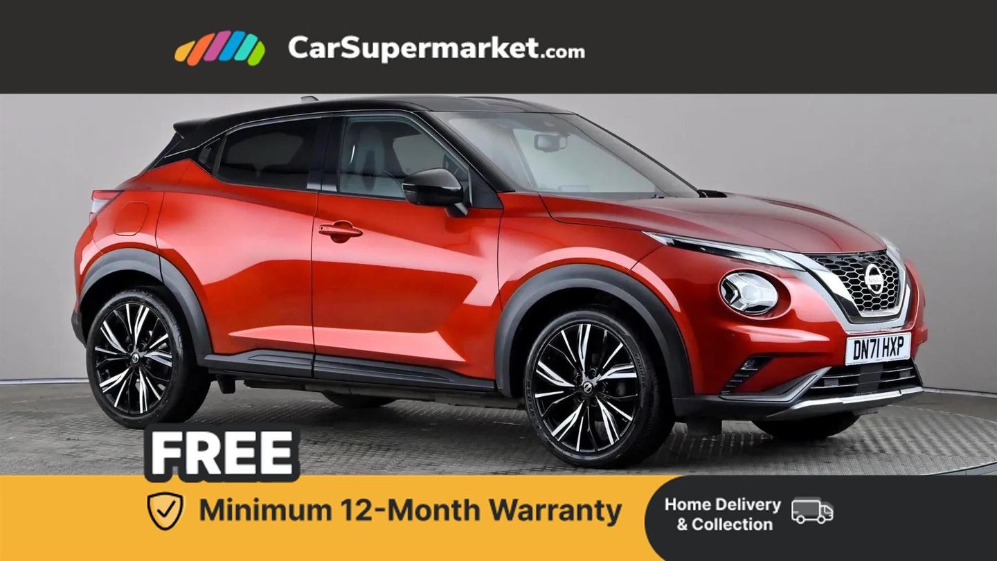 7" full colour TFT screen combimeter,Apple CarPlay and Google Android auto,Drive modes select (Eco, normal and sport),eCall emergency call system,Emergency and breakdown call,Front parking sensor,Idle start/stop system,Intelligent lane intervention,Lane departure warning system,Nissan connect 8" touch screen entertainment system,Nissan connect nav with TomTom traffic,Nissan connect services and Wifi connection,Outside temperature sensor,Power Steering,Rear parking sensor,Traffic sign recognition,Trip computer,Voice recognition,Gasoline particulate filter,Bluetooth system, USB, Aux-in and 12V socket,Bose personal plus audio system with 8 speakers(4 speakers and 2 headrest speaker for driver and passenger seats),Bose personal sound stage control,DAB Digital radio,Front lower bumper painted in silver finisher,Rear console USB port,Auto dimming interior rear view mirror,Auto headlights,Automatic hazard signal with emergency stop signal,Body colour bumpers,Body colour door handles,Electrically adjustable door mirrors with integrated indicators,Follow me home headlights,Front and rear electric window with one touch driver window,Heated and auto folding door mirrors,High beam assist,LED daytime running lights,LED front fog lights,LED headlamps,LED rear fog lamp,LED rear lamps,Rain sensor windscreen wipers,Rear privacy glass,Rear side wing doors,Rear wiper,Thermaclear heated windscreen,Three blink turn signal,3 height adjustable rear headrests,3 seat bench in 2nd row,60/40 split folding rear seat,Automatic climate control,Card holder on driver sunvisor,Door ambient lighting,Driver and passenger sliding and reclining seats,Driver seat back pocket,Driver side rear coat hanger,Driver/passenger sunvisors and vanity mirrors,Front and rear cabin lights,Front armrest,Front door pockets with bottle holders,Front head restraints,Front passenger isofix child seat anchorage point,Front/rear passenger grab handles,Gear console ambient circle lighting,Grey synthetic leather kneepad,Heated front seats,Height adjustable driver's seat,Height adjustable passenger seat,Internal chrome door handles,Leather gearshift knob,Leather steering wheel,Luggage board,Luggage space lighting,Monoform sporty seats,Multifunction steering wheel,Passenger seat back pocket,Rear door bottle holders,Single front passenger seat,Telescopic steering wheel adjustment,Two cupholders in front centre console,Two rear isofix child seat anchorage points with top tether,Welcome light and console tray ambient lighting,Advanced safety shield pack - Juke,ABS with EBD and brake assist,Active ride control,Active Trace Control,Driver and passenger airbags,Driver and passenger side airbags,Electric handbrake with auto hold function,Electronic Stability Programme (ESP),Front and rear curtain airbags,Height adjustable seatbelts,Hill start assist,Intelligent emergency braking with pedestrian and cyclist recognition,Rear door child safety locks,Seatbelt reminder for driver/front passenger and rear seats,Single tone horn,Three 3 point rear seatbelts,Traction control,Tyre pressure monitoring system,VDC Dynamic Vehicle Control,Ventilated rear brake discs,Alarm,Immobiliser,Intelligent Key with push button starter,Remote central locking,19" Akari alloy wheels