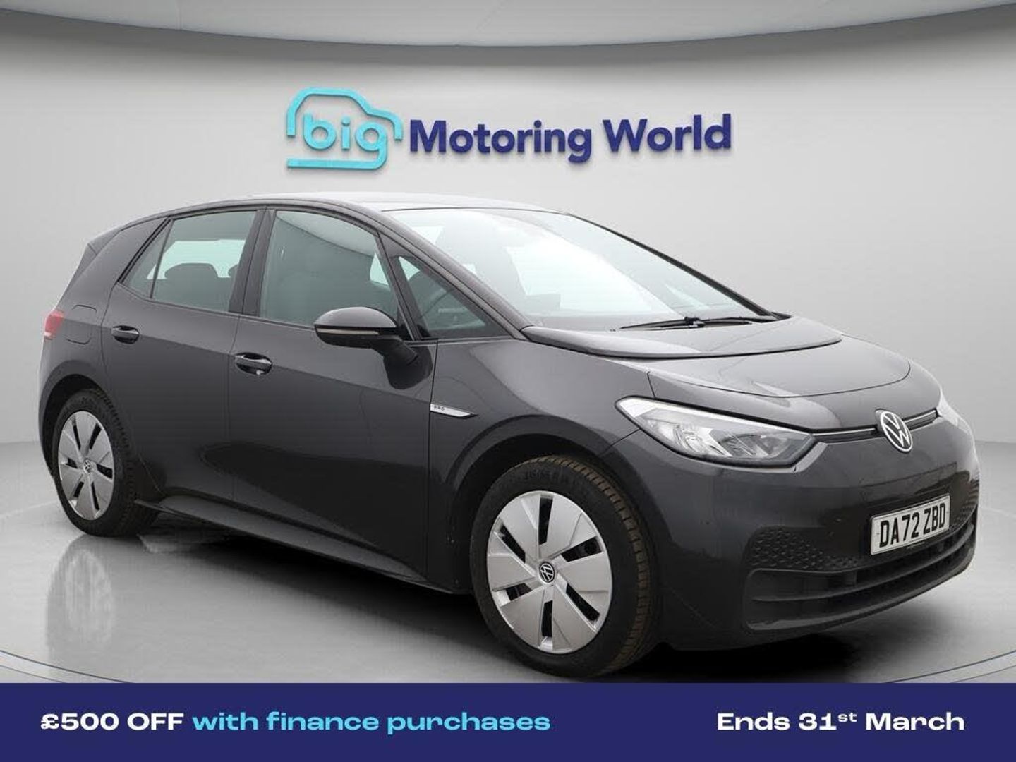 £500 towards your finance depo-Our Volkswagen ID.3 is finished in Grey. Specification includes a range of fantastic features including £500 towards your finance deposit, Apple CarPlay, Android Auto, Satellite Navigation, Heated Seats, Heated Steering Wheel, Bluetooth, Parking Sensors, Flat Bottom Steering Wheel, Powered Folding Mirrors Specification information is supplied by CAPHPI and may vary to the actual car. This data does not form any part of a buying contact. Please check specification prior to purchase in-store. The MOT is valid until December 2026, visit bigmotoringworld.co.uk for more photos, a 360 tour, service history and a free HPI report.Were BIG on peace of mind and this Grey Volkswagen ID.3 has completed our comprehensive 200 point inspection and passed all checks. Its ready for you to drive away with immediate collection in-store. We include a 90-day warranty as standard plus an option to extend for up to 3 years.Reserve this car exclusively for you, safely and securely at bigmotoringworld.co.uk, with a fully refundable £99 deposit. Test drive before you buy, with no commitment, no hassle and a completely haggle free experience. Still searching and want to see thousands more cars? We are BIG on choice with over 8000 cars to choose from.Visit our award winning web site bigmotoringworld.co.uk.Were Big Motoring World and were BIG on what matters to you.
