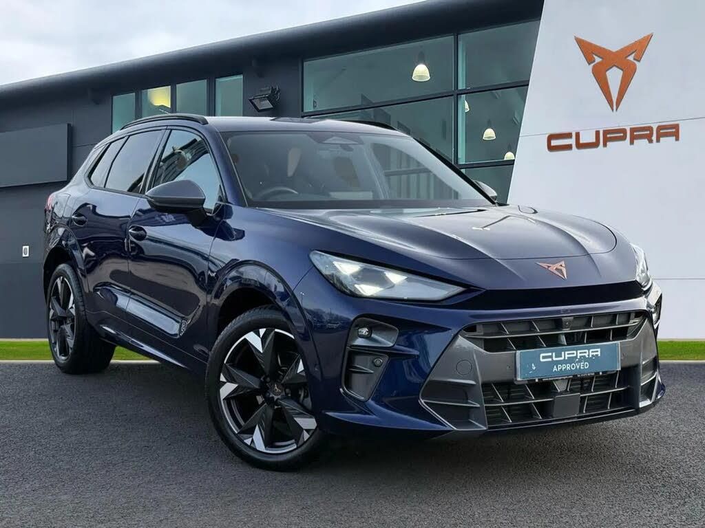 Metallic - Cosmos blue,Dark tinted rear windows,Electric front/rear windows,Heat reflecting windscreen,Rain sensing wipers,Rear wash/wipe,Black roof rails,Rear side wing doors,CUPRA 3D rear lights with ceremony & swiping indicator and illuminated logo,Daytime running lights with automatic headlight control and Coming and Leaving home function,Dynamic headlight range control,Front fog lamps with cornering function,High beam assist,LED headlamps with signature "CUPRA LED",Rear fog light on one side,back up light on both sides,Third brake light,Welcome lights (within exterior mirror housing),Brake control system - ESC and brake booster,Electronic parking brake,Front and rear disc brakes,Adaptive cruise control with follow-to-stop and speed limiter,Advanced driver alert system,Advanced lane assist with semi-automatic vehicle control in a medical emergency and traffic jam assist,Driving profile selection and conventional shock absorber,Dynamic road sign display,Front and rear parking sensors,Front assist (Forward collision warning with automatic braking) with multifunction camera and front cross traffic assist,Intelligent park assist,Rear traffic assist,Side and exit assist,Speed sensitive power steering,Top view camera (front camera,rear camera,2 side cameras),Auto dimming rear view mirror,Door mirrors with memory function and lowing function on passenger mirror,Electrically adjustable,heated and folding door mirrors,3 point seatbelts in front with pretensioner and electric height adjustment,3 point seatbelts on all rear seats,Child proof door locks,Driver and front passenger airbags,Front interaction airbag,Front passenger airbag deactivation switch,Front side airbags with curtain airbags,Pre-crash front and rear seat belt tensioner,window closure and hazard lights,Tyre pressure monitoring system,Visual and acoustic seat belt reminder,electric contact in front and rear,E-call,Electric tailgate with virtual pedal,Start/stop system with regenerative braking,Wireless phone charger,10.25" digital cockpit and configurable dashboard,Emergency steering support with turn assist,Head up Display,Media system with Nav - 12.9" touch display,voice control,full link phone (wired/wireless),DAB and Steering wheel mounted controls,Black decorative trims,Chrome interior detailing,3 seat bench in 2nd row,Driver seat memory function,Electrically adjustable front seats including lumbar support,Front and rear head restraints,Heated front seats,Isofix,Single front passenger seat,Unsplit rear seat bench,split folding backrest,with centre armrest,Three zone climate control with control panel in rear,Black roof lining,Cupra sports pedals,Dinamica cloth upholstery,Four x USB Type C ports (2 in front and 2 in rear),Front centre armrest,Heated leather wrapped multi function sports steering wheel with tiptronic,Illuminated interior front door sills,Operating voltage 12V,Variable luggage/load compartment floor,Front and rear reading lights X 4,Smart wraparound interior lighting,Sunvisors with illuminated mirror,Anti theft alarm,Keyless locking and starting system with keyless access,Locking wheel bolts,19" Spectrum exclusive machine alloy wheels,Tool kit