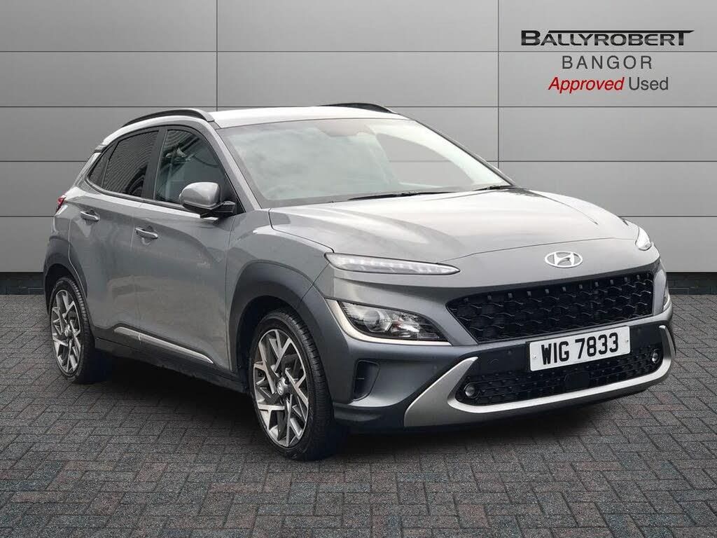 Manufacturer warranty until 24/01/2028. All vehicles are inspected by trained technicians and are history checked. Test drives and part-exchange are available, and you can choose, buy and drive away the same day. For more details on this or one of over 500 other cars at Ballyrobert, Northern Irelands leading Family Car Supermarket, search Ballyrobert.co.uk. (If you wish to enquire about this vehicle please call 02891 513757. This car is advertised from group stock and is available for viewing at our Bangor dealership. We Wont Be Beaten On Price.-Hyundai Kona 1.6 GDi Hybrid Premium 5dr DCT
