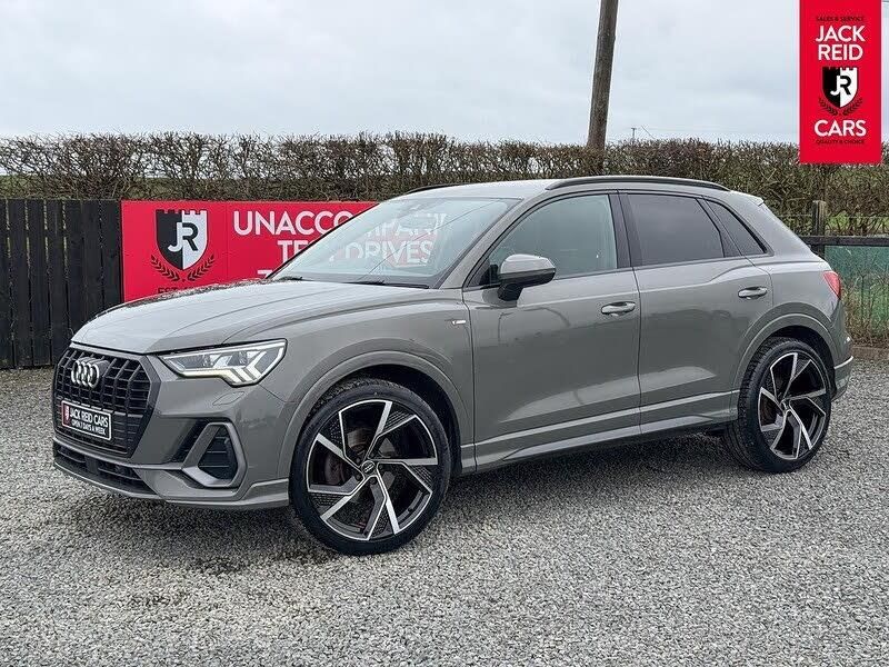 Check out what's all included in this 2019 Audi Q3 35 TFSI S Line 5dr S Tronic:. Comfort and sound pack.. Matrix LED headlights.. Dynamic front and rear indicators.. Rear view camera.. Folding auto dim door mirrors.. Advanced key.. 10.25" Audi Virtual Cockpit.. MMI navigation plus with MMI touch.. Power opening/closing tailgate.. Voice control system.. Audi smartphone interface.. Heated front sports seats.. Bang and Olufsen sound system.If you like the look of this car and would like to come for a look or an unaccompanied test drive feel free to call down anytime or get in touch to make an appointment. We are open 7 days a week for your convenience!We have one of the largest numbers of cars for sale in our area with up to 200 cars in stock ready to view! We stock a variety of makes and models such as Audi, BMW, Seat, Range Rover, Mercedes, Jaguar and many more!All our cars come warranted by Jack Reid Cars meaning that we make all our decisions in house unlike unreliable warranty companies with too many terms and conditions.We look forward to hearing from you!This car is shown with an optional new alloy wheel and tyre upgrade or it can be returned to the standard wheels, whichever suits you best. Please contact sales for pricing.