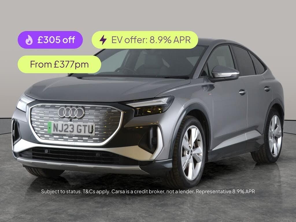 Experience the future of driving with this Audi Q4 E-tron Sportback. Enjoy heated, S-Line embossed sport seats, immersive MMI Navigation Plus, and seamless Apple CarPlay connectivity. Navigate effortlessly with adaptive cruise control, active lane assist, and traffic sign recognition. LED headlights light your way, while digital driver displays and selectable driving modes deliver both comfort and excitement. A stylish grey SUV that blends innovation with everyday luxury. 1 service recorded, last serviced on 22/04/2025 at 15,701 miles. MOT to 28/01/2027. Visit our website for service history, online valuation, full vehicle specification plus multiple images. Certain features listed may be available via subscription packages at extra costs, please consult with Audi for details. This vehicle is VAT qualifying. Any feature/option specified here is from 3rd party data. We cannot guarantee the accuracy of any specification supplied by a 3rd party. We recommend that you physically check the specification of the vehicle on site prior to purchase. This information does not form part of the buying contract. Terms & Conditions apply. We have over 2,000 cars available from our 10 national branches, check our website to see all our stock. Our Trustpilot rating is 4.4/5 with over 9,000 reviews.