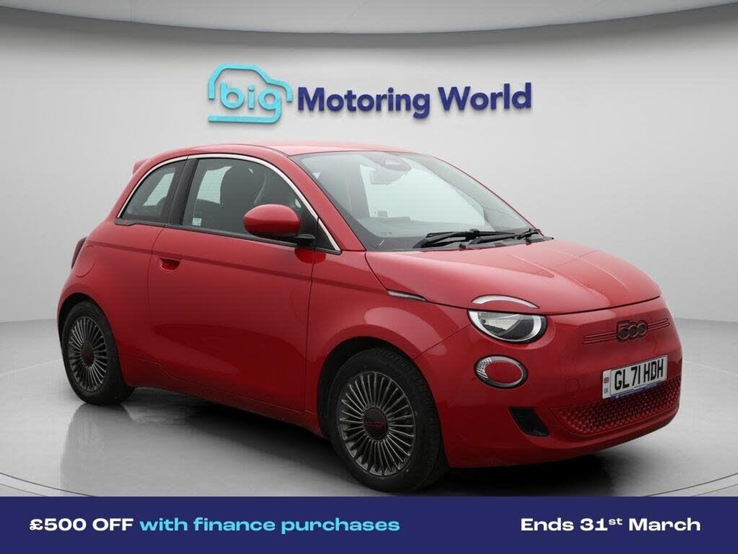 £500 towards your finance depo-Our Fiat 500e comes with optional extras worth £600. Specification includes a range of fantastic features including £500 towards your finance deposit, Satellite Navigation, Bluetooth, Parking Sensors, Cruise Control, Climate Control, Voice Control, DAB Radio , Touch Screen Control, Multi Function Steering Wheel Specification information is supplied by CAPHPI and may vary to the actual car. This data does not form any part of a buying contact. Please check specification prior to purchase in-store. The MOT is valid until January 2027, visit bigmotoringworld.co.uk for more photos, a 360 tour, service history and a free HPI report.Were BIG on peace of mind and this Red Fiat 500e has completed our comprehensive 200 point inspection and passed all checks. Its ready for you to drive away with immediate collection in-store. We include a 90-day warranty as standard plus an option to extend for up to 3 years.Reserve this car exclusively for you, safely and securely at bigmotoringworld.co.uk, with a fully refundable £99 deposit. Test drive before you buy, with no commitment, no hassle and a completely haggle free experience. Still searching and want to see thousands more cars? We are BIG on choice with over 8000 cars to choose from.Visit our award winning web site bigmotoringworld.co.uk.Were Big Motoring World and were BIG on what matters to you.
