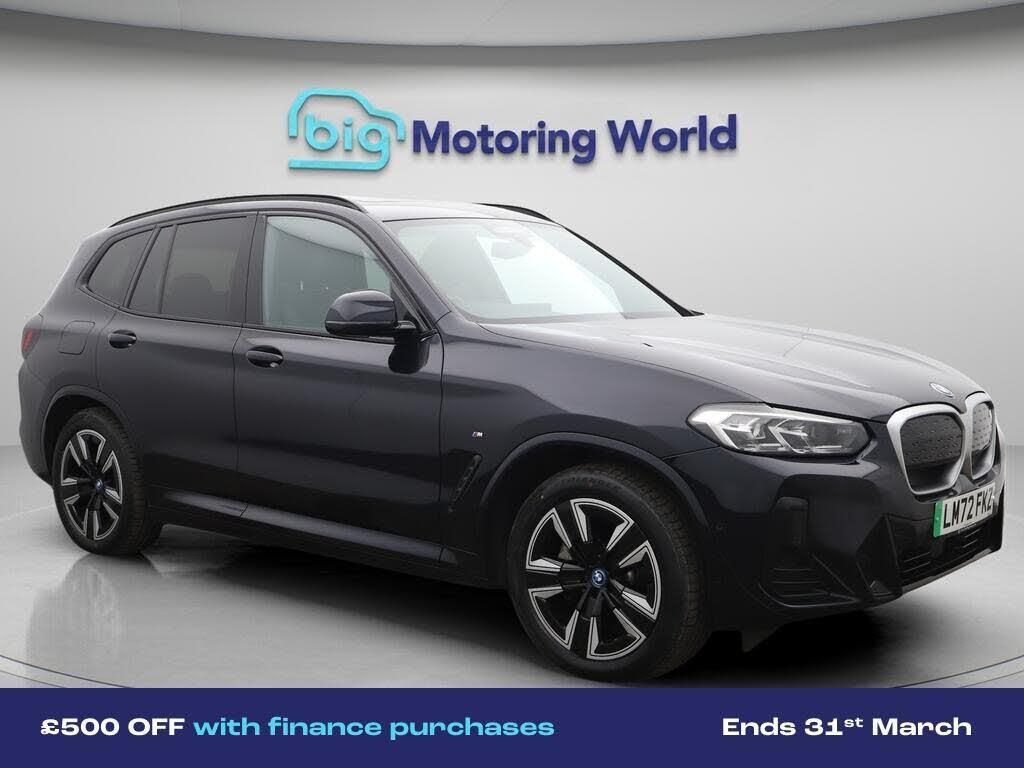 £500 towards your finance depo-Our BMW iX3 comes with optional extras worth £850. Specification includes a range of fantastic features including £500 towards your finance deposit Specification information is supplied by CAPHPI and may vary to the actual car. This data does not form any part of a buying contact. Please check specification prior to purchase in-store. The MOT is valid until September 2026, visit bigmotoringworld.co.uk for more photos, a 360 tour, service history and a free HPI report.Were BIG on peace of mind and this Black BMW iX3 has completed our comprehensive 200 point inspection and passed all checks. Its ready for you to drive away with immediate collection in-store. We include a 90-day warranty as standard plus an option to extend for up to 3 years.Reserve this car exclusively for you, safely and securely at bigmotoringworld.co.uk, with a fully refundable £99 deposit. Test drive before you buy, with no commitment, no hassle and a completely haggle free experience. Still searching and want to see thousands more cars? We are BIG on choice with over 8000 cars to choose from.Visit our award winning web site bigmotoringworld.co.uk.Were Big Motoring World and were BIG on what matters to you.