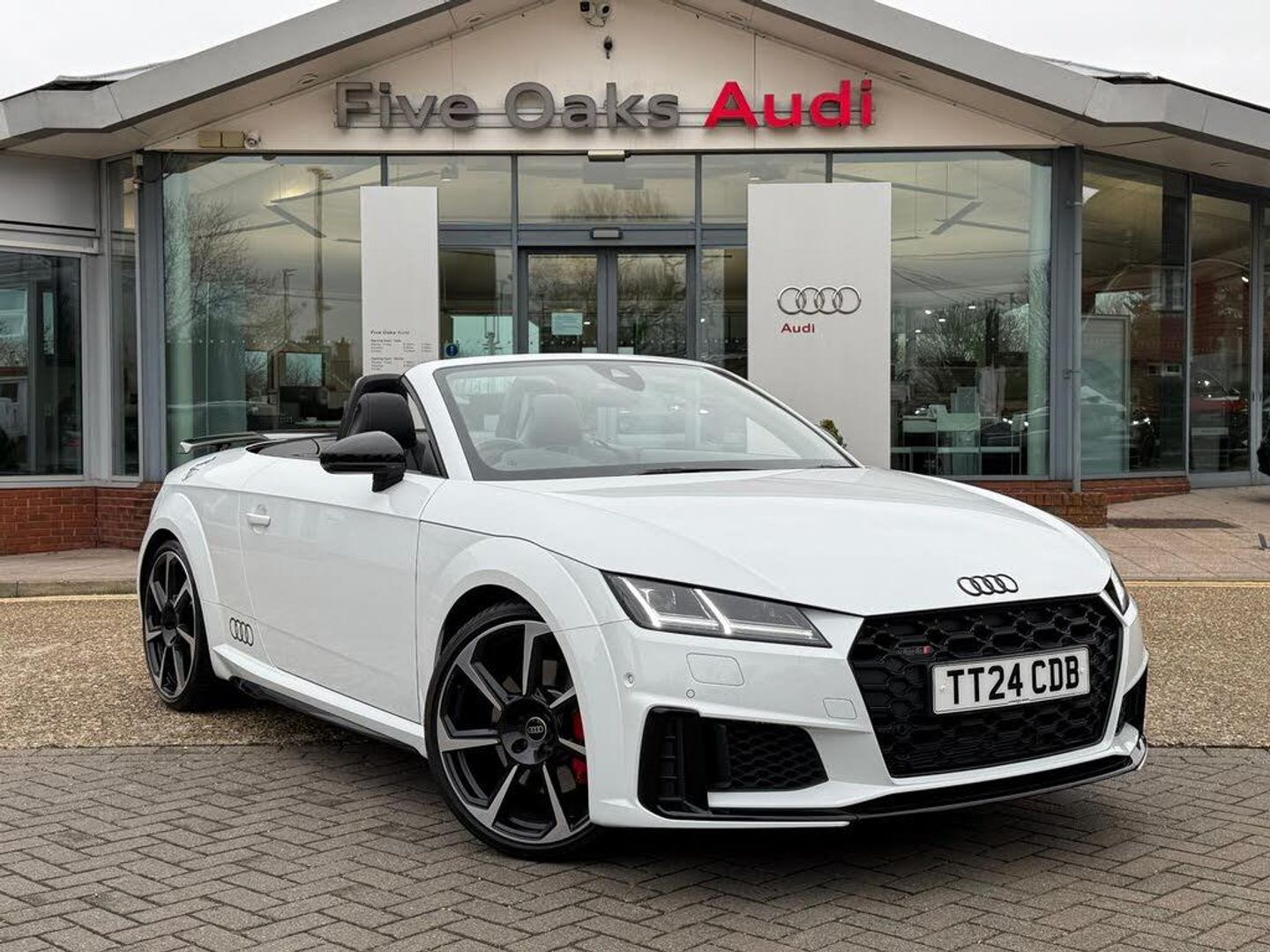 1 OWNER, COMFORT AND SOUND PACK, WIRELESS PHONE CHARGING, REVERSING CAMERA, BANG & OLUFSEN PREMIUM SOUND SYSTEM, BLACK LEATHER WITH RED DIAMOND STITCHING UPHOLSTERY, HEATED FRONT SEATS, HEAD LEVEL HEATING, ELECTRIC WIND DEFLECTOR, FLAT BOTTOM LEATHER STEERING WHEEL, RED BRAKE CALIPERS, SATELLITE NAVIGATION, MMI TOUCHSCREEN, AUDI VIRTUAL COCKPIT, BLUETOOTH CONNECTIVITY, DAB RADIO, AUDI SMARTPHONE INTERFACE WITH APPLE CARPLAY AND ANDROID AUTO, VOICE CONTROL, AUDI DRIVE SELECT, AUTO ELECTRIC PARKING BRAKE, LED HEADLIGHTS WITH HIGH BEAM ASSIST, BLACK STYLING PACK, 20-INCH ALLOY WHEELS, PRIVACY GLASS, ELECTRICALLY FOLDING/HEATED WING MIRRORS, REAR PARKING SENSORS, CRUISE CONTROL WITH SPEED LIMITER, AUDI SIDE ASSIST, TRAFFIC SIGN RECOGNITION, STORAGE PACKAGE, CONVENIENCE KEY, QUATTRO, EURO 6, ULEZ.All Audi Approved used cars are offered with a 12-month warranty and roadside assistance.Five Oaks Audi are delighted to offer this 2023 Audi TTS Roadster Final Edition TFSI 320 PS S tronic in Glacier White over Black Leather with Red Diamond Stitching and has completed just 5,529 miles. We are proud to be part of the Harwoods group, a family run business established in 1931. With four Approved Audi retailers within our group, we have access to over 400 vehicles. If this isn't the right car for you, please contact us and we will find it.If this isn't the right car for you our Group stock has specification to include Sunroof, Leather, Heated Seats, Apple Car Play, Heated Steering Wheel, Reverse Camera, Rear Entertainment, Deployable Towbar, 360-degree camera, Comfort & Sound Pack, Tech Pack, Panoramic Sun Roof, Tow Bar, Black Pack, Air Suspension, Apple Carplay, Adaptive Cruise, Massage Seats, Refrigerator, AWD, Technology Pack, Head up Display, Vorsprung, Technik, Black Edition, S-Line, S Line, Edition 1, TFSI, Quattro, Sportback, LWB. Other colour options including Black, Blue, Green, Silver, White, Red, Grey, Yellow, Orange. Interior options of Ebony, Black, Ivory, White, Tan, Cream, Oyster, & Euro 6 ULEZ compliant drive trains.-COMFORT AND SOUND PACK-PERSONALISED FINANCE PLANS AVAILABLE, PART EXCHANGE WELCOME & NATIONWIDE DELIVERY AVAILABLE
