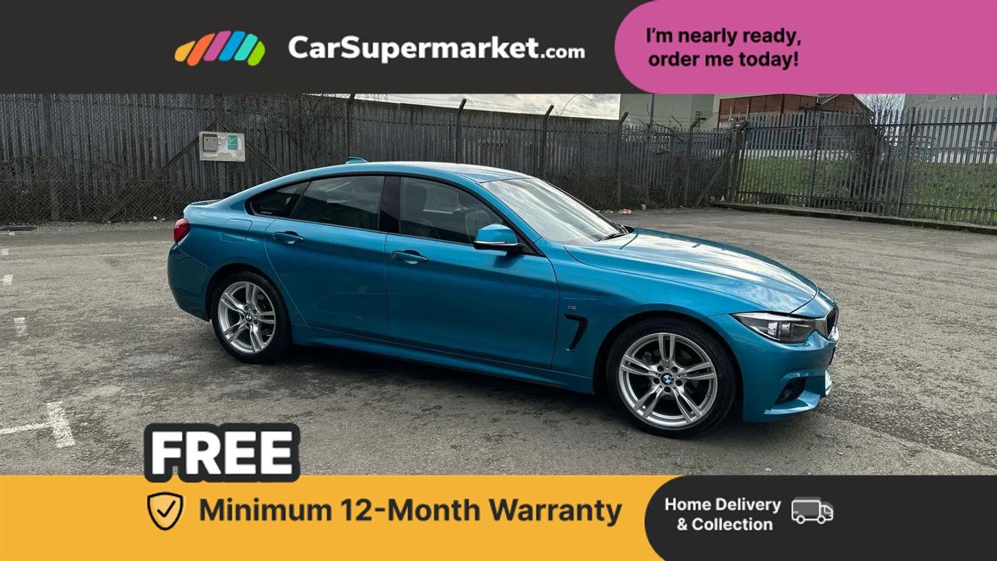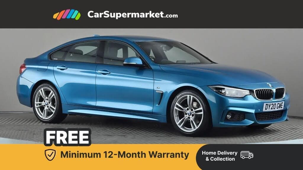 Auto start-stop,Automatic tailgate operation,BMW Online services,BMW remote services,BMW Teleservices,Brake pad wear indicator in front and rear,Check Control warning system for monitoring of lights and door/luggage compartment open warning,Condition based service,Control display - 6.5" colour display screen,Front/rear park distance control (PDC),iDrive Controller with 8 favourite buttons,Instrument cluster with speedometer with mph readout, tachometer, fuel gauge and oil temperature gauge,Lights on warning by audio warning signal when ignition is switched off,M Sport instrument cluster,Oil sensor for level and grade, warning by check control system,On board computer - average speed, fuel consumption, outside temp display with acoustic warning, clock/date, service interval, odometer/trip meter,Optimum shift indicator,Personal Profile - automatic lock when driving away selectable,Professional multimedia navigation system,Run flat indicator,Aluminium front suspension,Drive performance control with ECO PRO comfort + sport mode,Electronic differential lock,Five link rear suspension,Sport automatic transmission with steering-wheel mounted gearshift paddles and launch control,VALVETRONIC engine management,DAB tuner,Auto dimming rear view mirror,Body colour door handles,Body colour front bumper,Body colour mirror caps,Body colour rear bumper,Body colour roof mouldings,Chrome kidney grille with extra wide black, high gloss black vertical slats,Direction indicator, side repeaters, integrated in exterior mirrors,Door sill finishers with M designation,Dual exhaust tailpipes in left with chrome finisher,Dynamic brake lights,Electric front windows with fingertip open/close + anti-trap facility,Follow me home headlights,Front air inlet with high gloss black finish,Front and rear bumper system,Green tinted heat protection glazing,Heated windscreen washer jets,Heated, electrically adjustable exterior mirror aspheric on driver side, convex on passenger side,High gloss black air breather,High gloss black rear bumper insert,High gloss shadow line exterior trim,High level third brake light,LED daytime running lights,LED direction indicator lenses,LED eyebrow light,LED front fog lights,LED tail lights with 3D L-shaped LED light design,Lightweight engineering,M aerodynamic bodystyling,Model designation,Rain sensor including auto headlights activation,Shark fin antenna,Two speed adjustable intervals windscreen wipers,Visible VIN plate,Welcome lighting,Windscreen with grey shadeband,12V sockets in front centre console and passenger footwell,2 Rear seat headrests,3 spoke leather M sport multifunction sports steering wheel,4 grab handles,Air conditioning and radio control panel in high gloss black,Ambient lighting - switchable BMW classic orange/ cold white LED,Anthracite headlining,Automatic air conditioning with two zone control,Bottle holders integrated into front door trim storage compartments,Chrome centre console panel highlight,Driver and front passenger seat heating,Front and rear side armrests integrated into door trim,Front folding sliding armrest with storage compartment,Front head restraints,Front sports seats,Full black panel display,Glove compartment,Interior lighting, front centre over interior mirror and rear centre automatic interior light activation when door is opened,Leather gearknob and handbrake lever,Load lashing eyes in luggage compartment,Reach + rake manual adjustable steering column,Rear child seat isofix attachment with passenger airbag deactivation,Rear coded belt buckles,Storage compartment in rear centre console,Sunvisors with vanity mirrors and ticket pocket,Toolkit located in luggage compartment,Two front cup holders with a sliding lid,Extended lighting package - 4 Series Gran coupe,Non Smokers pack,3 point seatbelts on all seats,Airbag - Front driver and passenger, front and rear head, front side, curtain head protection, manual deactivation of front passenger airbag possible,Anti lock braking system (ABS) with brake assist,Automatic Stability Control (ASC),Battery safety cut-off,BMW emergency call,Brake drying,Brake energy regeneration,Brake pretensioning,Cornering brake control (CBC),Crash sensor activating central locking release, hazard warning lights,Dynamic brake control,Dynamic stability control + (DSC+),Dynamic Traction Control - DTC,Front and rear ventilated brake disc,Front seatbelt force limiters,Hill start assistant,Pyrotechnically pre-tensioned front seatbelts,Seat belt security check for driver,Side impact protection,Twin horns,Tyre pressure monitoring with three level warning strategy,Variable torque distribution,Warning triangle and first aid kit,Alarm system (Thatcham 1) with electronic engine immobiliser,Central locking switch for all doors, fuel filler cap and luggage compartment,Remote control integrated key with blue inset,Start/stop button with Comfort Go keyless engine start and auto Start/stop deactivation button,Reduced rolling resistance tyres,Run flat tyres