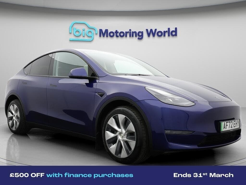 £500 towards your finance depo-Our Tesla Model Y is finished in Blue. Specification includes a range of fantastic features including £500 towards your finance deposit, Panoramic Roof, All Wheel Drive, Leather Seats, Satellite Navigation, Privacy Glass, Heated Seats, Wireless Phone Charging, Rear View Camera, Heated Rear Seats Specification information is supplied by CAPHPI and may vary to the actual car. This data does not form any part of a buying contact. Please check specification prior to purchase in-store. The MOT is valid until September 2026, visit bigmotoringworld.co.uk for more photos, a 360 tour, service history and a free HPI report.Were BIG on peace of mind and this Blue Tesla Model Y has completed our comprehensive 200 point inspection and passed all checks. Its ready for you to drive away with immediate collection in-store. We include a 90-day warranty as standard plus an option to extend for up to 3 years.Reserve this car exclusively for you, safely and securely at bigmotoringworld.co.uk, with a fully refundable £99 deposit. Test drive before you buy, with no commitment, no hassle and a completely haggle free experience. Still searching and want to see thousands more cars? We are BIG on choice with over 8000 cars to choose from.Visit our award winning web site bigmotoringworld.co.uk.Were Big Motoring World and were BIG on what matters to you.