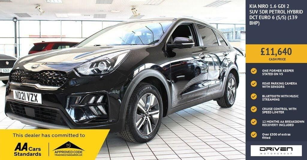 KIA NIRO 1.6 GDI 2 SUV 5DR PETROL HYBRID FINISHED IN MIDNIGHT BLACK AND COMPLIMENTED WITH PART BLACK LEATHER INTERIOR, THIS VEHICLE HAS BEEN VERY WELL CARED FOR AND MAINTAINED WITH DOCUMENTED SERVICE HISTORY PLUS COMPREHENSIVE PRE DELIVERY HEALTH CHECK COMPLETED PRIOR TO SALE AT 85738 MILES. KEY FEATURES INCLUDE ALLOY WHEELS, TOUCHSCREEN DISPLAY, CRUISE CONTROL, ALARM, IMMOBILISER, SMARTPHONE INTEGRATION, AUTO DIMMING REAR VIEW MIRROR, AUTOMATIC HEADLIGHTS, BLUETOOTH WITH MUSIC STREAMING, DAB RADIO, DRIVE MODE SELECT, LANE ASSIST, REAR PARKING SENSORS WITH REVERSE CAMERA, SPEED LIMITER, USB PORT, VOICE RECOGNITION PLUS MUCH MORE. COMMITTED TO AA CARS STANDARDS: 3 MONTHS OR 3000 MILES WARRANTY INCLUDED WITH AN OPTION TO UPGRADE: 12 MONTHS AA BREAKDOWN RECOVERY INCLUDED: £75.00 CONTRIBUTION TOWARDS YOUR NEXT SERVICE/MOT AT ANY AA CARS STANDARD APPROVED WORKSHOP: WE STAND BY THE QUALITY OF OUR VEHICLES. WITH THE PURCHASE OF THIS VEHICLE, YOU WILL RECEIVE 3 MONTHS OR 3000 WARRANTY, 12 MONTHS AA BREAKDOWN RECOVERY, GIVING YOU ADDITIONAL PEACE OF MIND AND PROTECTION. ALL OUR CARS COME WITH AT LEAST 6 MONTHS MOT AND PRE SALE HEALTH CHECK AND ROAD TEST. OUR PROFESSIONAL TEAM ENSURES YOUR VEHICLE STAYS IN TOP CONDITION, AND YOU ENJOY A HASSLE-FREE OWNERSHIP EXPERIENCE. 4.7 STARS ON GOOGLE WITH OVER 550 REVIEWS: JOIN OUR COMMUNITY OF SATISFIED CUSTOMERS! OUR DEALERSHIP IS PROUD TO HAVE A 4.7 STAR RATING ON GOOGLE, BACKED BY OVER 550 POSITIVE REVIEWS. WE ARE COMMITTED TO PROVIDING EXCELLENT SERVICE AND HIGH-QUALITY VEHICLES. This Vehicle Comes Equipped with High Specification, Which Includes: - Drive this car home with complete confidence and satisfaction: All cars proudly offered by driven group are rigorously inspected, hpi checked and prepared to the highest standard To drive this car home, visit www.drivegroup.co.uk or call 01642-601999 to arrange an appointment with our sales team Please note we do not operate an organised distance selling scheme as defined by the consumer contracts (cancellation, information and additional charges) regulations 2013. Therefore, even if you choose to not view your vehicle at our premises prior to purchase,you will not be entitled to cancel your order under any 14 day cancellation period. All other statutory rights remain unaffected. Whilst every effort has been made to ensure the accuracy of the information contained in this website, please check with us about any item which may affect your decision to purchase. Driven motor group shall not be liable for any errors, inaccuracies or delays in content.
