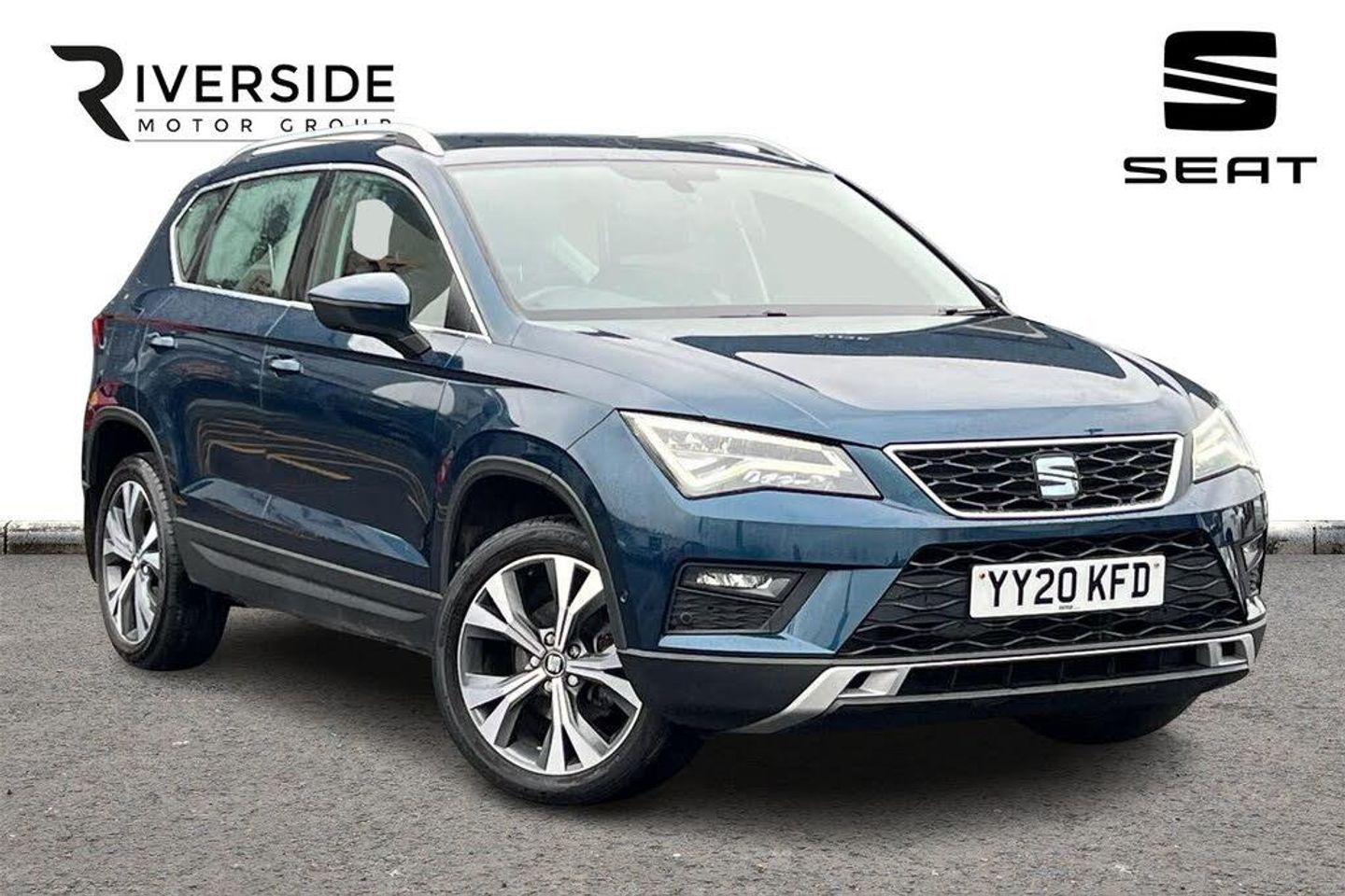 Cloth Comfort Seats - Nora Blue, Seat Approved, 12 Months Seat Approved Warranty, No Administration Fees Applicable, 145 Point Seat Approved Mechanical / Safety Check, Complimentary 5 Day Drive Away Insurance, Metallic paint, Front and rear electric windows, Rear wash/wipe, Comfort suspension, Armrest with air outlet in rear, Black wheel arch extensions, Body colour bumpers, Body colour door handles, Chrome front grille frame, Chrome headlight surround, Chrome roof rails, Chrome side window trim, Hidden exhaust pipe, Matt black radiator grille, Full LED headlights, LED daytime running lights, LED front fog lights, Rear fog lights, Rear LED tail lights, ABS, Automatic post collision braking, Electronic parking brake with auto hold, Electronic stability control, ESP+EBA, Hill hold control, Traction control, 3.5" driver's display, Cruise control, Driver alert system, Electric speed sensitive power steering, Front assist city emergency braking and pedestrian protection, Self parking functionality (includes front and rear parking sensors), Body colour door mirrors, Door mirrors with welcome light silhouette, Electric adjustable/heated/folding door mirrors, 3x3 point rear seatbelts, Driver/Front Passenger airbags, Drivers knee airbag, Front and rear seatbelt reminder, Front passenger airbag deactivation, Front side airbags, Tiredness recognition system, Twin curtain airbags, Tyre pressure monitoring system, Remote fuel flap release, SEAT logo boot release, 'Lights On' Reminder warning buzzer, Digital clock, Full Link Smartphone Integration with Mirror Link, Apple Car Play, Google Android Auto, Low fuel warning light, Multi function display, Outside temperature gauge, RPM counter, Satellite navigation system, Trip computer, Chrome interior detailing, 60/40 split folding rear seat, Active head restraints, Driver and passenger seats, height-adjustable, with lumbar adjustment and height-adjustable headrests, Front seat back storage pockets, ISOFIX points in outer rear seats with top tether anchorage points, Rear armrest and easy back seat release mechanism from boot, Rear head restraints, SEAT USB media cable, Steering wheel mounted audio/phone controls, Dual zone climate control, 12V socket in front, 4 Lashing eyes in boot, Adjustable front armrest with storage compartment, Cloth upholstery with front comfort seats, Front cupholders, Gear shift indicator, Leather steering wheel and gear knob, Storage box under drivers seat, Ambient spot lighting and front footwell illumination, Front courtesy lights, Front reading lights, Illuminated boot, Illuminated glovebox, Instrument lighting with brightness control, Rear reading lights, XDS electronic differential lock, Driver and passenger sun visor, covered and illuminated mirror, driver sun visor with card holder, Navigation system pack - Ateca, 2 folding remote keys with window open/close function, Immobiliser, Locking wheel bolts, Remote central locking, Volumetric alarm with back up horn, 18" Performance machined alloy wheels 36/2