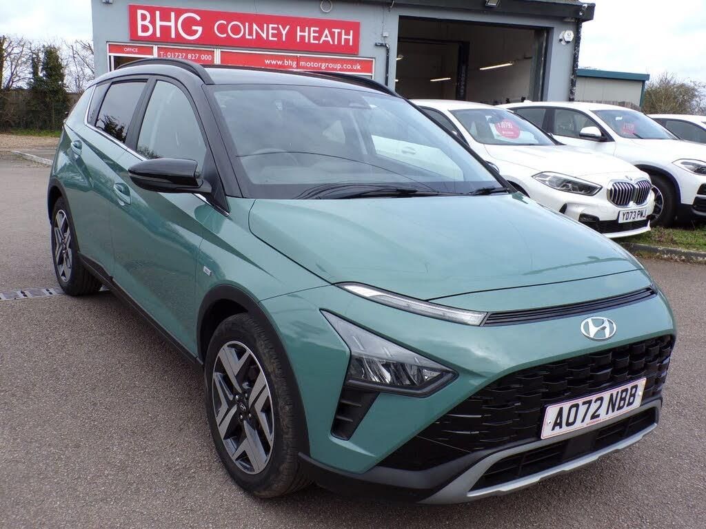 Black Cloth interior.This 2023 Hyundai BAYON T GDi Ultimate is a standout example, boasting a full dealership service history and having had only one owner from new. This stylish compact SUV is powered by an efficient 1.0L Petrol Hybrid engine, meeting Euro 6 emissions standards. It comes equipped with advanced LED MFR headlights that automatically adjust with a dusk sensor, ensuring optimal visibility. Inside, you'll appreciate the convenience of Bluetooth connectivity with voice recognition, seamless integration with Android Auto for your phone, and a handy wireless phone charging pad., , The Hyundai BAYON T GDi Ultimate offers impressive fuel economy, achieving a highlight of 53 mpg, which indicates its superior efficiency compared to similar vehicles. Furthermore, its low CO2 emissions contribute to a more environmentally conscious drive. This well maintained, single owner vehicle presents a compelling choice for those seeking a modern, feature packed, and economical compact SUV. PLEASE CALL TO VIEW OR RESERVE AS CARS ARE KEPT IN 2 LOCATIONS . . . . FOR YOUR PEACE OF MIND . . . . ALL CARS ARE HEALTH CHECKED . . . . SERVICED IF DUE . . . . NEW MOT IF LESS THAN 6 MONTHS LEFT.....HPI CHECKED . . . . VALETED . . . . PART EXCHANGE WELCOME . . . . COMPETITIVE FINANCE RATES AVAILABLE (subject to status) . . . . OVER 100 MORE VEHICLES ON OUR WEBSITE, www.bhgmotorgroup.co.uk, Full dealership history, Excellent bodywork, Black Cloth interior - Excellent Condition, 5 seats, Metallic Green, 1 owner,