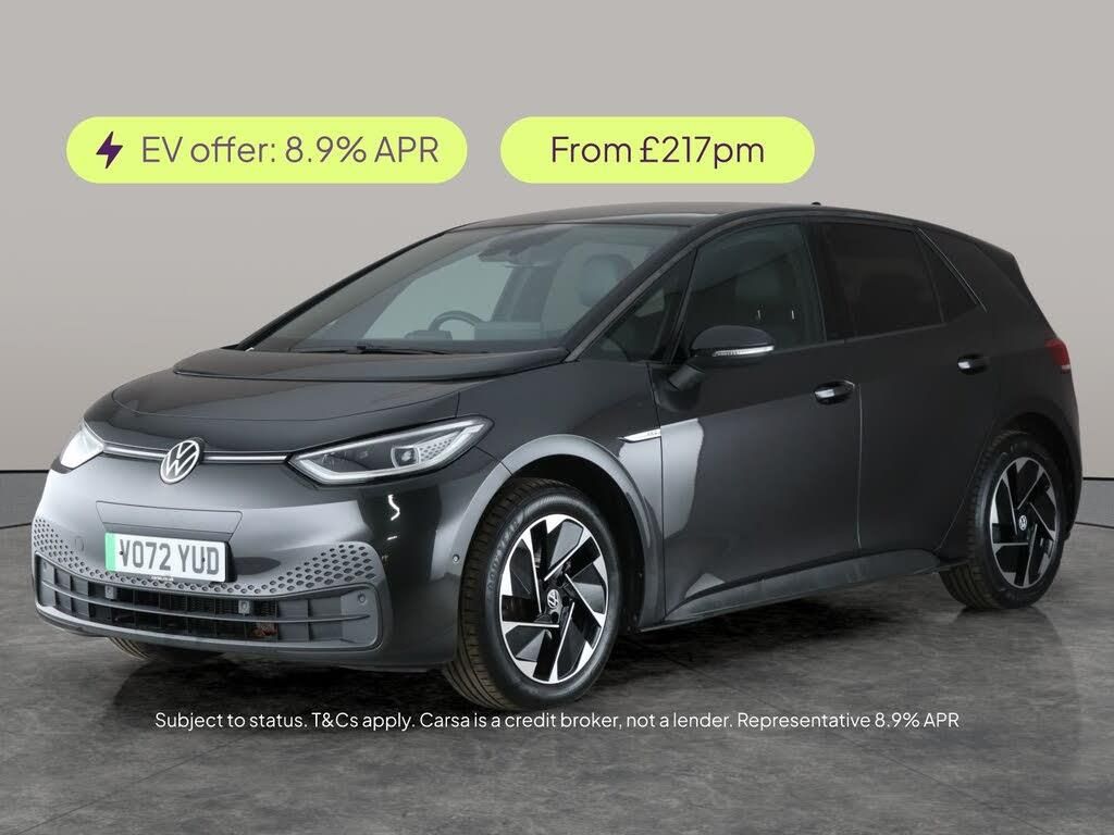 Experience all-electric driving in style with this grey Volkswagen ID.3 hatchback. Enjoy great views from the panoramic sunroof and ride on stylish alloy wheels. Stay connected with Apple CarPlay, and enjoy your favourite music through the upgraded sound system. Drive with confidence thanks to Adaptive Cruise Control, Blind Spot Assist, and a Reversing Camera. Heated seats, LED headlights, Sat Nav, and Active Lane Assist add comfort and safety to every journey. 1 service recorded, last serviced on 28/10/2024 at 11,967 miles. MOT to 09/10/2026. Visit our website for service history, online valuation, full vehicle specification plus multiple images. This vehicle is VAT qualifying. Any feature/option specified here is from 3rd party data. We cannot guarantee the accuracy of any specification supplied by a 3rd party. We recommend that you physically check the specification of the vehicle on site prior to purchase. This information does not form part of the buying contract. Terms & Conditions apply. We have over 2,000 cars available from our 10 national branches, check our website to see all our stock. Our Trustpilot rating is 4.4/5 with over 9,000 reviews.