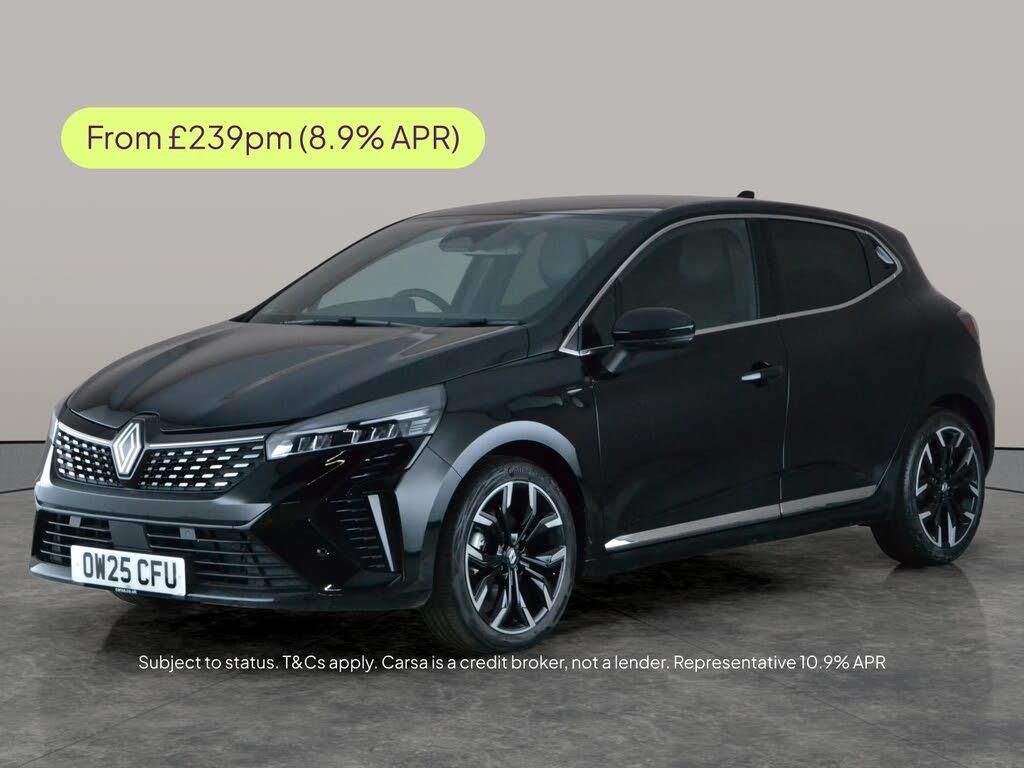 Step into modern driving with this Renault Clio Hatchback in sleek black, featuring exclusive techno fabric seats. Enjoy seamless journeys with Apple CarPlay, sat nav, and built-in wifi to keep you connected. Manoeuvring is a breeze thanks to Park Assist, reversing camera, and front and rear parking sensors. Stay safe with lane departure warning and traffic sign recognition. Plus, cruise control and selectable driving modes ensure a smooth, personalised drive every time. Experience innovation and comfort in one compact package. MOT to 28/05/2028. Visit our website for service history, online valuation, full vehicle specification plus multiple images. Any feature/option specified here is from 3rd party data. We cannot guarantee the accuracy of any specification supplied by a 3rd party. We recommend that you physically check the specification of the vehicle on site prior to purchase. This information does not form part of the buying contract. Terms & Conditions apply. We have over 2,000 cars available from our 10 national branches, check our website to see all our stock. Our Trustpilot rating is 4.4/5 with over 9,000 reviews.