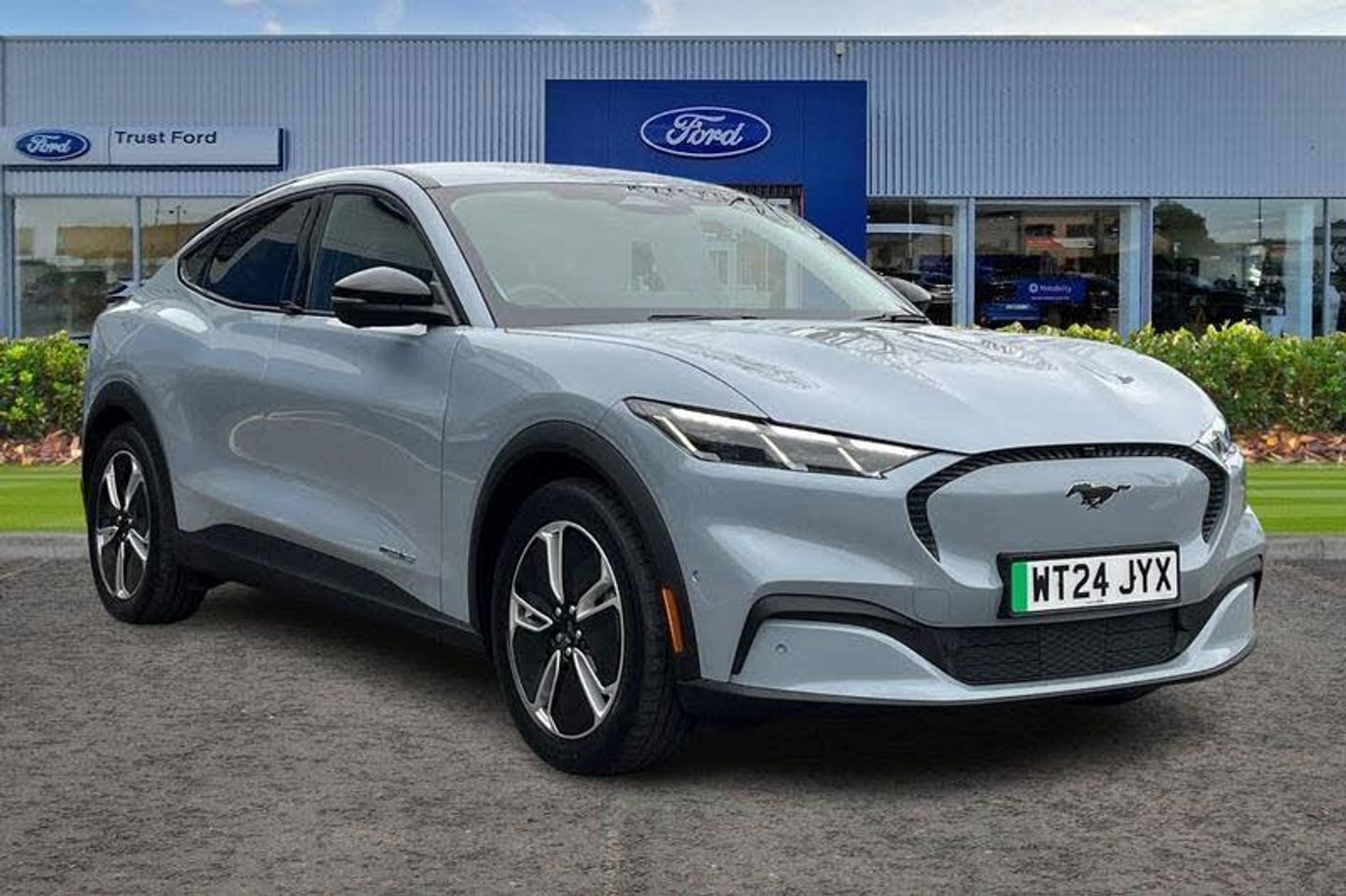 10.2 digital insturment cluster, 360 degree view camera, Applink remote control system, BLIS (Blind Spot Information System) with cross traffic alert, Distance alert and indication system, Electric power steering, Emergency services call system, Ford SYNC4A with 15.5Touch, DAB radio, Emer assist, Wireless carplay androidauto, 2 front, rear USB ports, 6 speakers, FordPass connect, Connected naviation, Front and rear parking sensors, Intelligent adaptive cruise control with stop and go + lane centering, Lane departure warning with lane keeping aid, Selectable drive modes - active, whisper and untamed, Trip computer, Wireless charging pad, Black painted power fold heated mirrors with puddle light mustang logo projection, Body colour bumpers, Brace front grille design, Daytime running lights, LED 3rd brake light, LED Mustang signature tail lights, LED reflector headlamps, Quickclear heated windscreen, Rear privacy glass, Rear side wing doors, Rear wiper, Side cladding and wheel arches in black, 3 seat bench in 2nd row, 6 way manual driver seat adjustments, 6 way manual passenger seat adjustments, Dual electronic automatic temperature control, Front headrests, Front trunk, Full sensico artificical leather upholstery, Heated front seats and steering wheel, One pedal drive, Rear head restraints, Single front passenger seat, 3 point rear seatbelts, ABS, Child locks on rear doors, ESP, Evasive steering assist, Pre collision assist inc Collision mitigation, Forward collision warning, Dynamic brake support, Automated emergency braking