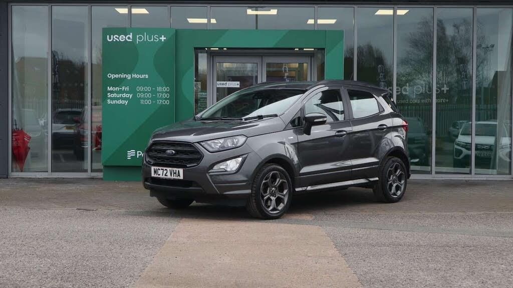 Discover this 2023 Ford EcoSport T ST-Line, a stylish and practical choice for your next vehicle. This Euro 6 compliant model boasts a responsive 1.0L petrol engine, offering an impressive fuel economy of 46 miles per gallon. For added convenience and safety, it comes equipped with rear parking sensors, which include parking assistance, and automatic headlights that illuminate the road when needed. The Ford EcoSport T ST-Line stands out with its low CO2 emissions, indicating a more environmentally conscious performance compared to similar vehicles. This model combines efficient driving with the sporty ST-Line trim, making it a compelling option for those seeking a well equipped and economical compact SUV.-Discover this 2023 Ford EcoSport T ST-Line, a stylish and practical choice for your next vehicle. This Euro 6 compliant model boasts a responsive 1.0L petrol engine, offering an impressive fuel economy of 46 miles per gallon. For added convenience and safety, it comes equipped with rear parking sensors, which include parking assistance, and automatic headlights that illuminate the road when needed. The Ford EcoSport T ST-Line stands out with its low CO2 emissions, indicating a more environmentally conscious performance compared to similar vehicles. This model combines efficient driving with the sporty ST-Line trim, making it a compelling option for those seeking a well equipped and economical compact SUV.