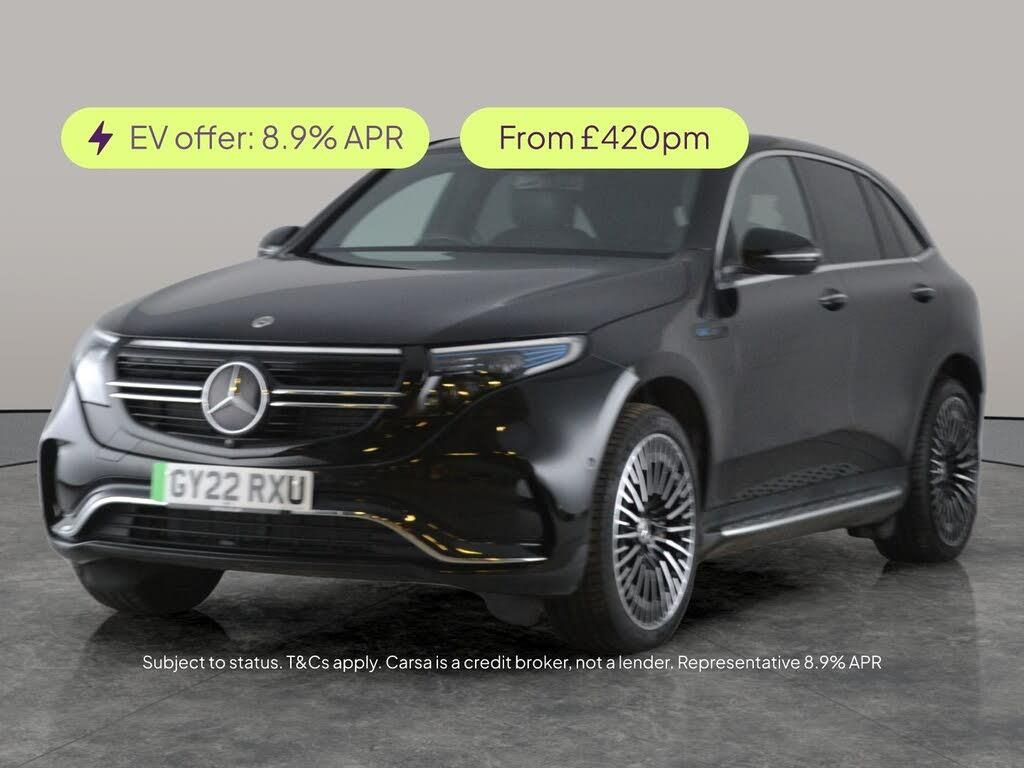 Experience luxury and innovation with this stunning black Mercedes-Benz EQC SUV. Enjoy the open skies with the sunroof, immerse yourself in rich sound with the upgraded audio system, and access your world easily using Apple CarPlay and keyless entry. Glide in comfort with heated leather seats, sat nav, and enhanced peace of mind from active lane assist, blind spot assist, and a reversing camera. LED headlights, the Mirror Package, and Comfort Pack add to the premium feel of this electric SUV. 3 services recorded, last serviced on 11/10/2025 at 22,285 miles. MOT to 01/02/2027. Visit our website for service history, online valuation, full vehicle specification plus multiple images. This vehicle is VAT qualifying. Any feature/option specified here is from 3rd party data. We cannot guarantee the accuracy of any specification supplied by a 3rd party. We recommend that you physically check the specification of the vehicle on site prior to purchase. This information does not form part of the buying contract. Terms & Conditions apply. We have over 2,000 cars available from our 10 national branches, check our website to see all our stock. Our Trustpilot rating is 4.4/5 with over 9,000 reviews.