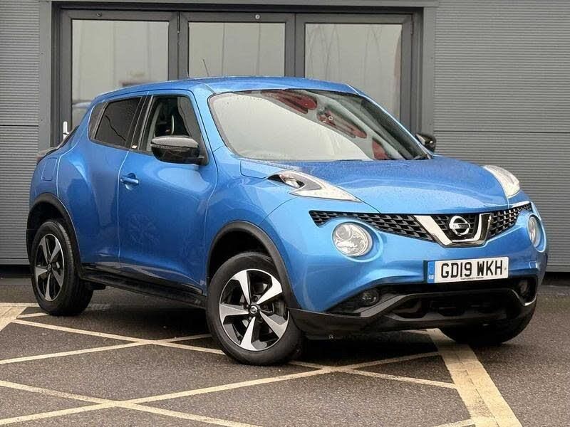 Exterior Features, Premium metallic paint, Packs, Exterior pack - Black - Juke, Personalisation pack - Blue - Juke Xtronic, Paint - Special, Premium metallic - Vivid blue, Trim - Part Leather, Artificial leather/suede - Black with blue accent, Exterior Features, Electric front/rear windows, Heated rear windscreen, Privacy glass, Rain sensor windscreen wipers, Rear wiper, Body colour bumpers, Body colour door handles, Dark chrome grille, Automatic headlights, LED daytime running lights, LED front fog lights, LED indicators in door mirrors, Safety, ABS + EBD + EBA, ESP + traction control, VDC Dynamic Vehicle Control, Cruise control + speed limiter, Electric speed sensitive power steering, Electric door mirrors, Electric folding door mirrors, Heated door mirrors, Child locks on rear doors, Driver and passenger airbags, Driver and passenger side airbags, Front and rear curtain airbags, Height adjustable front seatbelts, Passenger airbag deactivate switch, Three 3 point rear seatbelts, Tyre pressure monitoring system, Warning triangle and first aid kit, Audio / Communications, Bluetooth system, 6 speakers, Aux input, Bose personal sound system, DAB Digital radio, Steering wheel mounted audio controls, Stereo radio/CD player and MP3 facility, USB port, Driver Convenience, Push button starter, Miscellaneous, Colour rear view camera, Door/boot open warning light, Exterior temperature gauge, Low fuel level warning light, Nissan connect sat nav system, Service interval indicator, Trip computer, Interior Features, Climate control, Pollen filter, 12V socket, Artificial leather/suede upholstery, Front armrest, Front cupholders x 2, Front door pockets with bottle holders, Gear shift indicator, Glovebox, Internal chrome door handles, Leather steering wheel and gear knob, Luggage area under floor storage box, Rear tonneau cover integrated into tailgate, Steering wheel rake adjustment, Driver/passenger reading lights, Interior courtesy lights, Map reading lamp, Driver/passenger sunvisors and vanity mirrors, Trim, 3 height adjustable rear headrests, 60/40 split folding rear seat, Front head restraints, Front seat belt pre-tensioners with load limiters, Height adjustable driver's seat, Isofix child seat preparation, Passenger seat back pocket, Sports seats, Security, Alarm, Immobiliser, Intelligent Key, Remote central locking, Wheels, 16 inch Aero black alloy wheels, Tyre repair kit