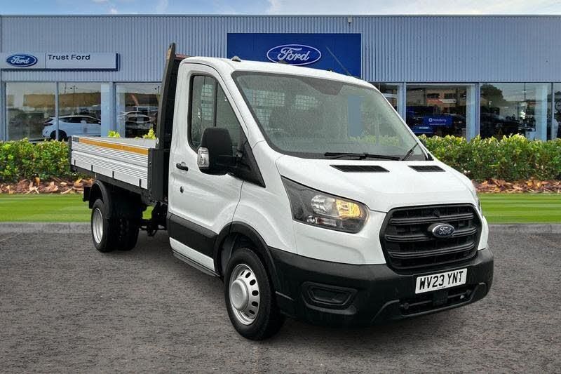 HILL START ASSIST temporarily stops you rolling backwards or forwards when making a hill start - maintaining pressure to the braking system for an extra 25 seconds giving you more time and control as you move your foot from the brake to the accelerator, QUICKCLEAR HEATED WINDSCREEN uses ultra thin filaments that superheat to de-ice and de-mist your windscreen as well as help de-freeze the wipers and works in seconds, SELECTABLE DRIVING MODES To choose from tailoring the throttle response steering and gear-change behaviour to the conditions , BLUETOOTH HANDS FREE WITH VOICE CONTROL allows you to operate both your mobile phone and Ford audio system - controlling several functions using a set list of simple voice commands, Anti-lock brake system, Remote central locking, Electric windows, PAS, Rear bumper with integral step, Recirculation heater, Rear mudflaps, Warning lights, Reach and rake adjustable steering column, Roof marker lights, 16 steel wheels, Audio controls mounted on steering wheel, 2 x 12V power outlets, Deadlocks, Part body colour front bumper, Daytime running lights, ESP + Hill start assist, Wide bodyside mouldings, Low roof line, Driver seatbelt reminder, Electronic dynamic cornering control, Side wind mitigation, Tablet holder, Vehicle maintenance monitor, Selectable drive mode, Emergency brake warning, Curve control, Easy clean rubber floor covering in cab, Fixed rear window, Rear axle Alt A - Narrow track, Intermittent variable windshield wiper, Header courtesy lights, Partial rubber inside floor cover, Molded gear shift knob, Glove box lid, Partial molded headliner, Day/Night inside mirror, Quad beam headlamps, Complete tinted glass, Configurable interior light/battery saver - 10 Min, Unperforated cab back panel, Interior trim accent pack A - Transit, MEDIUM WHEEL BASE, TIPPER, Chassis Cab, ULEZ COMPLIANT, ULEZ, NATIONWIDE DELIVERY AVAILABLE, EURO 6