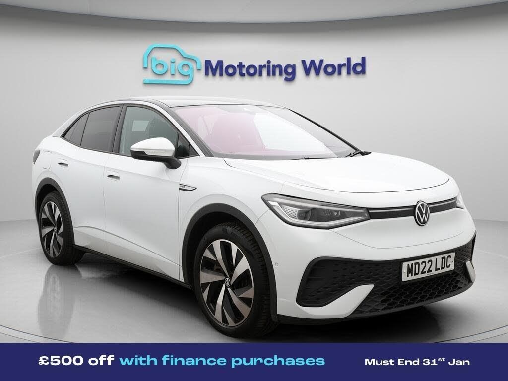 £500 towards your finance depo-Our Volkswagen ID.5 is finished in White. Specification includes a range of fantastic features including £500 towards your finance deposit, Apple CarPlay, Privacy Glass, Ambient Lighting, Climate Control, Voice Control, DAB Radio , Rear Spoiler, USB Interface, Electric Windows Specification information is supplied by CAPHPI and may vary to the actual car. This data does not form any part of a buying contact. Please check specification prior to purchase in-store. The MOT is valid until August 2026, visit bigmotoringworld.co.uk for more photos, a 360 tour, service history and a free HPI report.Were BIG on peace of mind and this White Volkswagen ID.5 has completed our comprehensive 200 point inspection and passed all checks. Its ready for you to drive away with immediate collection in-store. We include a 90-day warranty as standard plus an option to extend for up to 3 years.Reserve this car exclusively for you, safely and securely at bigmotoringworld.co.uk, with a fully refundable £99 deposit. Test drive before you buy, with no commitment, no hassle and a completely haggle free experience. Still searching and want to see thousands more cars? We are BIG on choice with over 8000 cars to choose from.Visit our award winning web site bigmotoringworld.co.uk.Were Big Motoring World and were BIG on what matters to you.