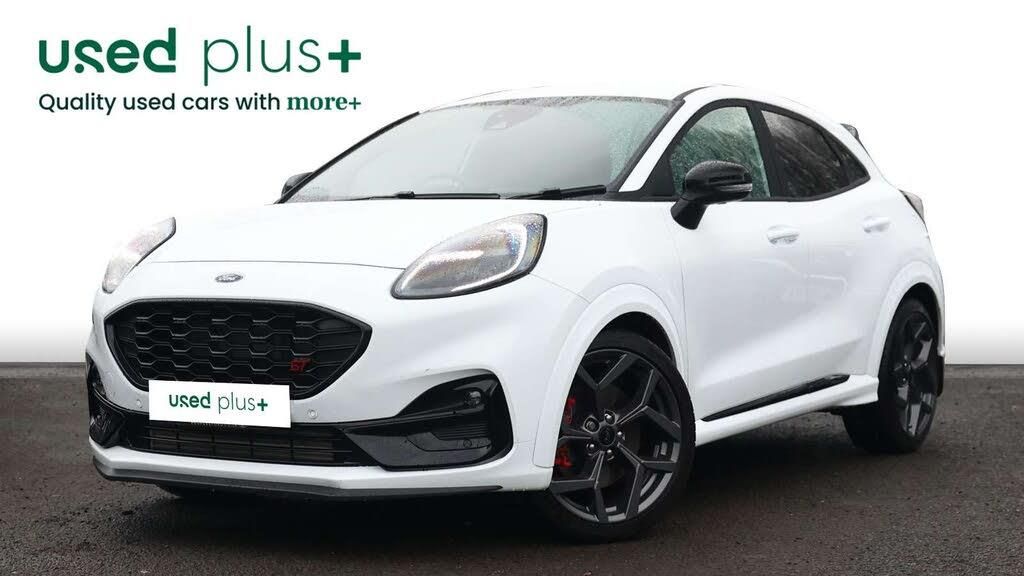 The Ford Puma 1.5 EcoBoost ST is a compact SUV that packs heart-racing performance into a family-friendly package. Its 1.5-litre EcoBoost engine with ST-tuned suspension and selectable drive modesincluding Normal, Sport, Eco, and Trackmakes every drive dynamic, while Intelligent Speed Assist and lane keeping aid keep you confident on every journey. Step inside to find a tech-savvy cabin: a 12.3" full digital instrument cluster, wireless charging, Ford SYNC 3 with navigation, and a B&O premium audio system. Comfort and style are highlighted by ST partial leather seats with metal grey stitching, alloy sports pedals, ST flat-bottomed steering wheel, and ST gear shift knob. Practicality meets performance with the Ford Megabox extended bootspace, rear parking sensors, power foldable heated mirrors, and privacy glass. Safety is comprehensive with pedestrian and cyclist detection, pre-collision assist, ESC, hill start assist, and child locks. Finished with the ST body styling kit, dual chrome exhausts, red brake calipers, and 19" magnetite alloy wheels, the Puma ST isnt just built to moveits built to excite.-The Ford Puma 1.5 EcoBoost ST is a compact SUV that packs heart-racing performance into a family-friendly package. Its 1.5-litre EcoBoost engine with ST-tuned suspension and selectable drive modesincluding Normal, Sport, Eco, and Trackmakes every drive dynamic, while Intelligent Speed Assist and lane keeping aid keep you confident on every journey. Step inside to find a tech-savvy cabin: a 12.3" full digital instrument cluster, wireless charging, Ford SYNC 3 with navigation, and a B&O premium audio system. Comfort and style are highlighted by ST partial leather seats with metal grey stitching, alloy sports pedals, ST flat-bottomed steering wheel, and ST gear shift knob. Practicality meets performance with the Ford Megabox extended bootspace, rear parking sensors, power foldable heated mirrors, and privacy glass. Safety is comprehensive with pedestrian and cyclist detection, pre-collision assist, ESC, hill start assist, and child locks. Finished with the ST body styling kit, dual chrome exhausts, red brake calipers, and 19" magnetite alloy wheels, the Puma ST isnt just built to moveits built to excite.