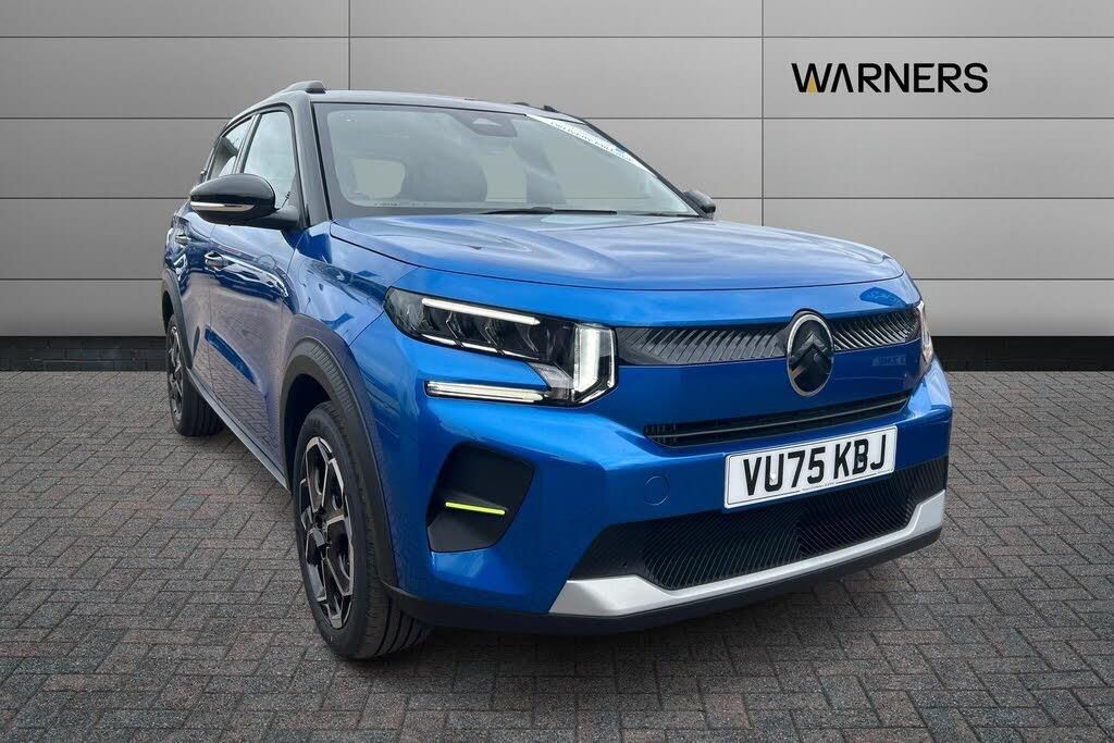 1x USB-C connection on dashboard, 1x USB-C fast charge in row 2, Active lane departure warning system, Citroen connect box emergency and assistance system, Connected services, Cruise control + speed limiter, eCall emergency call system, Electric power steering, Exterior temperature display, Head up Display, Manual gearshift indicator, Multi function trip computer, Rear parking sensors, Advanced comfort suspension with progressive hydraulic cushions, DAB digital radio, 6 loudspeakers, 10.25'' capacitive touchscreen, wireless mirror screen includes apple carplay/android auto and bluetooth, 3D rear light signature, Automatic activation of hazard warning lights, Automatic headlights, Black roof bars, Black wheel arch extensions, Body colour bumpers, Electric front power windows with auto up/down for the driver and auto down for passenger, Electric rear power windows, Electrically heated, folding and adjustable external rear view mirrors, Front and rear skid plates in grey, Front intermittent wipers, Gloss black exterior door handles, Gloss black finish B and C pillar, Gloss black rear view mirror caps, Heated rear window, Intelligent beam headlights, LED daytime running lights, LED headlights with electric levelling, LED third brake light, Rear roof spoiler, Rear side wing doors, Standard day night switchable interior rear view mirror, Tinted side windows, Turn indicators integrated into rear view mirrors, 1 litre bottle storage in front and rear door pockets, 1/3 to 2/3 split folding rear seat, 12V socket on console, 4x anchoring rings on boot, Advanced comfort front and rear seats, Bag support hook in boot, Central storage with 2 cupholders, Chrome effect interior door handles, Closed glove box, Cloth upholstery, Driver and passenger's sun visor with courtesy mirror, Driver's seat height adjustment, Fixed boot light, Front seats adjustable with forward back slide and adjustable backrest, Height adjustable front head restraints, Height/reach adjust steering wheel, ISOFIX mounting on outer rear seats with top tether and labels indicating fixing points, Leather effect steering wheel with gloss black and chrome elements and integrated audio/telephone/cruise control/speed limit controls, LED front lighting panel with map reading lights, Manual air conditioning, Map pockets in back of driver and front passenger seats with additional pocket for smartphone storage, Matt black gear knob with gloss black insert, Padded fabric armrests in front and rear doors with labels, Parcel shelf, Seatbelt unfastened on the move audible and visual alert for front and rear seats, Single front passenger seat, Three rear headrests, Safety pack - C3 Plus and Max, Visibility pack - C3 Plus and Max, ABS, Child locks on rear doors, Driver and front passenger seatbelts with pyrotechnic pretensioners and force limiters, Driver's airbag, ESP with anti skid system, Front passenger airbag, Front passenger airbag deactivation, Front side airbags + front/rear curtain airbags, Hill start assist, Manual parking brake, Mono-tone horn, Three rear 3-point seatbelts, Tyre pressure monitoring system, Automatic door and boot locking when moving off with automatic unlocking in case of impact, Central locking with deadlocks, Connected anti theft alarm (Volumetric and perimetric with tilt sensor), Immobiliser, Remote control central locking with 1x plip key and 1x non plip key, 2 side air vents and 2 central air vents on dashboard, Grey decor on dasbhboard, Grey decor on front doors, 17'' Atacamite diamond cut bi-tone alloy wheels with locking wheel nuts