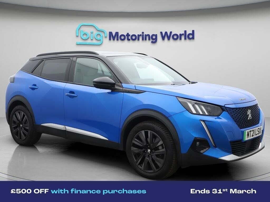 £500 towards your finance depo-Our Peugeot E-2008 comes with optional extras worth £1,475. Specification includes a range of fantastic features including £500 towards your finance deposit, 18'' alloy wheels, Part Leather Seats, Adaptive Cruise Control, Lane Assist, Visibility Pack, Electric Panoramic Roof, Satellite Navigation, Privacy Glass, Heated Seats Specification information is supplied by CAPHPI and may vary to the actual car. This data does not form any part of a buying contact. Please check specification prior to purchase in-store. The MOT is valid until February 2027, visit bigmotoringworld.co.uk for more photos, a 360 tour, service history and a free HPI report.Were BIG on peace of mind and this Blue Peugeot E-2008 has completed our comprehensive 200 point inspection and passed all checks. Its ready for you to drive away with immediate collection in-store. We include a 90-day warranty as standard plus an option to extend for up to 3 years.Reserve this car exclusively for you, safely and securely at bigmotoringworld.co.uk, with a fully refundable £99 deposit. Test drive before you buy, with no commitment, no hassle and a completely haggle free experience. Still searching and want to see thousands more cars? We are BIG on choice with over 8000 cars to choose from.Visit our award winning web site bigmotoringworld.co.uk.Were Big Motoring World and were BIG on what matters to you.