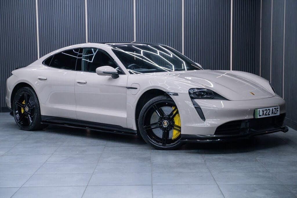 Rear Light Strip with PORSCHE logo in Black, Model Designation Painted, Privacy Glass, Roof Lining Grab Handles in Race-Tex, Fixed Glass Panoramic Roof, Coffee Beige, 10-Piston Aluminium Monobloc Fixed Caliper Brakes at Front, 11kW AC On-Board Charger, 12v Electrical Socket in Rear Luggage Compartment, 12v Electrical Socket in the Centre Console Storage Compartment, 16.8in Curved Display, 18-Way Adaptive Sports Seats - Front with Memory Package, 2 USB-C Charge Ports in the Rear, 2 USB-C Connectivity and Charge Ports in the Centre Console Storage Compartment, 21in Alloy Wheels - Mission E Design, 3-Point Automatic Seat Belts with Pre-Tensioners - Front and Outer Rear Seats and Front Force Limiter, 4-Point LED Daytime Running Lights, 50kW DC On-Board Charger for use of Public Charging Stations with a voltage of 400V, ABS - Anti-lock Brake System, Accent Package in Dark Silver, Active Bonnet System, Active Carbon Fine Dust Filter, Adaptive Air Suspension including Porsche Active Suspension Management - PASM, Advanced 2-Zone Climate Control, Aluminium Double-Wishbone Front Axle, Aluminium Multi-Link Rear Axle, Aluminium Rhombus Interior Package, Auto-Deploying Door Handles, Automatic Headlight Activation including Welcome Home Lighting, Automatic Hold Function, Automatically Dimming Exterior and Interior Mirrors, B-Pillar Clothes Hook on Driver and Passengers Side, BOSE Surround Sound System with 14 Speakers Including Subwoofer and a Total Output of 710 Watts, Brake Calipers Painted in Yellow Finish, Brake Pad Wear Indicator, Bumpers Comprising High-Strength Cross Members and Two Deformation Elements Each with One Threaded Fixture Point for Towing Eye Contained in On-Board Tool Kit, Centre Console with Direct Touch Control, Charge Port on Driver and Front Passenger Side, Collision and Brake Assist, Cruise Control including Adaptive Speed Limiter, Curtain Airbags Along Entire Roof Frame and Side Windows from the A-Pillar to the C-Pillar, DC Charging at Public Charging Stations with Voltage of 800V, Digital Radio, Door Sill Guards in Matt Carbon, Driver Personalisation, Electric Charging Cover on Driver and Front Passenger Side, Electric Parking Brake, Electric Windows - Front and Rear, Electrically Adjustable and Heated Exterior Mirrors - Aspherical on Drivers Side, Emergency Tyre Sealant and Pump Kit, Engine Bonnet - Rear Tailgate - Doors - Side Panels - Roof and Front Wings in Aluminium, Engine Immobiliser with Remote Central Locking and Alarm System with Radar-Based Interior Surveillance, Exterior Mirror Lower Trims Painted in Exterior Colour Including Mirror Base in Black - High-Gloss, Floor Mats, Four-Piston Aluminium Monobloc Fixed Brake Calipers at Rear, Front Centre Console Armrest with Integrated Storage Compartment, Front Side Airbags, Full Size Airbags for Driver and Front Passenger, Full Surface Aerodynamic Underbody Panelling, Fully Galvanised Steel-Aluminium Hybrid Lightweight Bodyshell, GT Multi-function Sports Steering Wheel in Race-Tex, Heat Pump, Heated Rear Window with Auto-Off Function, ISOFIX Mounting Points for Child Seats on Outer Rear Seats, Illuminated Vanity Mirrors for Driver and Front Passenger, Integrated Front Headrests, Integrated Porsche 4D Chassis Control, Interior Package - Carbon, Interior Trim Package in Matt Carbon, Keyless Drive, Knee Airbags for Driver and Front Passenger, LED Interior Lighting Concept, LED Matrix Headlights including Porsche Dynamic Light System Plus, Lane Keeping Assist including Traffic Sign Recognition, Light Strip, Lower Valance with Inlays in Carbon, Luggage Compartments at Front and Rear, Manual Adjustment of Seat Belt Height for Driver and Front Passenger Seats, Mobile Charger Plus with 4.5m Vehicle Side Cable, Model Designation on Tailgate Painted in Black - High-Gloss, Multi-Collision Brake, PCCB - Porsche Ceramic Composite Brakes, PTV Plus - Porsche Torque Vectoring Plus, ParkAssist - Front and Rear with Visual and Audible Warning, Parking Pre-Climatisation, Pedal Pads Edges in Stainless Steel, Performance Battery Plus, Permanent Magnet Synchronous - PSM - Motor on the Front and Rear Axles, Porsche Active Aerodynamics with Active Air Intake Flaps and Adaptive Rear Spoiler, Porsche Communication Management PCM Includes Navigation Module Mobile Phone Preparation Audio Interface and Voice Control System, Porsche Connect with Apple Carplay, Porsche Electric Sport Sound, Porsche Intelligent Range Manager, Porsche Logo in Glass Look Integrated into Rear Light Strip, Porsche Recuperation Management - PRM, Porsche Stability Management - PSM Including ABS with Extended Brake Functions, Porsche Vehicle Tracking System Plus, Power Boot Lid, Powered Charging Port Cover, Public Charging Cable, Range Mode for the Activation of Efficiency-Orientated Settings, Rear Axle Steering including Power Steering Plus, Rear Diffuser in Louvered Design with Inlay in Carbon, Rear Seats with 2 Seats in Single-Seat Look - Fold out Armrest and Split Folding Backrests 60-40, Reversing Camera, Rollover Detection for Activation of Curtain Airbags and Seat Belt Pretensioners, Roof Lining in Fabric, Roof in Aluminium Contoured Design with Dynamic Recess Profile, Seat Belt Warning System for Driver - Front Passenger and Rear Seat System, Seat Heating - Front and Rear, Side Impact Protection Integrated into Doors, Side Window Trims - Black High Gloss, Single-Speed Transmission on the Front Axle - 2-Speed Transmission on the Rear Axle, Sport Chrono Package including GT Multi-Function Sports Steering Wheel and Mode Switch, Sport Mode for the Activation of Dynamic Performance Settings Including Launch Control, SportDesign Sideskirts with Inlays in Carbon, Storage Compartment, Sun Visors for Driver and Front Passenger, Supply Cable for Domestic Electrical Socket, Supply Cable for Industrial Electrical Outlet - 230V-32A, Taycan Badge on the Centre Console, Thermally Insulated Glass All Round, Third Brake Light, Turbo S Logo on the Front and Rear Headrests, Two Integrat