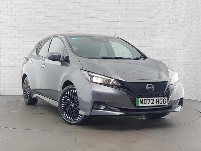 360 degree colour camera view, Navigation system with voice control, Apple car play/Android Auto, Front and rear parking sensors, Bluetooth with audio streaming, 8" colour display with touchscreen, Isofix child seat anchor points, 7" full colour TFT screen combimeter, Automatic climate control with pollen filter and timer, Blind spot intervention, Intelligent around view monitor, Intelligent Cruise control (ICC), Lane departure warning system, Nissan connect services app (air conditioning control, cabin heating and charging), Mac Pherson strut front suspension and twist beam axle rear suspension, Max DC charging power, ChaDeMo type: up to 50kW, DAB Digital radio, Automatic rain sensing wipers, Automatic activation of hazard warning lights, Rear privacy glass, Rain sensor, Heat pack with Heated front seats - Leaf, 17" Diamond cut black alloy wheels