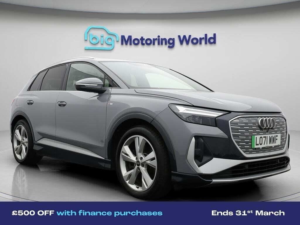 £500 towards your finance depo-Our Audi Q4 e-tron is finished in Grey. Specification includes a range of fantastic features including £500 towards your finance deposit Specification information is supplied by CAPHPI and may vary to the actual car. This data does not form any part of a buying contact. Please check specification prior to purchase in-store visit bigmotoringworld.co.uk for more photos, a 360 tour, service history and a free HPI report.Were BIG on peace of mind and this Grey Audi Q4 e-tron has completed our comprehensive 200 point inspection and passed all checks. Its ready for you to drive away with immediate collection in-store. We include a 90-day warranty as standard plus an option to extend for up to 3 years.Reserve this car exclusively for you, safely and securely at bigmotoringworld.co.uk, with a fully refundable £99 deposit. Test drive before you buy, with no commitment, no hassle and a completely haggle free experience. Still searching and want to see thousands more cars? We are BIG on choice with over 8000 cars to choose from.Visit our award winning web site bigmotoringworld.co.uk.Were Big Motoring World and were BIG on what matters to you.