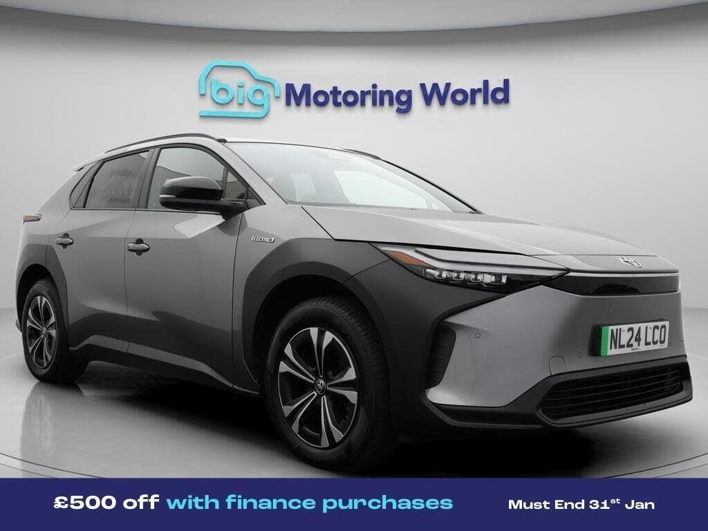 £500 towards your finance depo-Our Toyota bZ4X comes with optional extras worth £965. Specification includes a range of fantastic features including £500 towards your finance deposit, All Wheel Drive, Part Leather Seats, Lane Assist, Satellite Navigation, Privacy Glass, Heated Seats, Bluetooth, Parking Sensors, 2 Zone Climate Specification information is supplied by CAPHPI and may vary to the actual car. This data does not form any part of a buying contact. Please check specification prior to purchase in-store. The MOT is valid until April 2027, visit bigmotoringworld.co.uk for more photos, a 360 tour, service history and a free HPI report.Were BIG on peace of mind and this Grey Toyota bZ4X has completed our comprehensive 200 point inspection and passed all checks. Its ready for you to drive away with immediate collection in-store. We include a 90-day warranty as standard plus an option to extend for up to 3 years.Reserve this car exclusively for you, safely and securely at bigmotoringworld.co.uk, with a fully refundable £99 deposit. Test drive before you buy, with no commitment, no hassle and a completely haggle free experience. Still searching and want to see thousands more cars? We are BIG on choice with over 8000 cars to choose from.Visit our award winning web site bigmotoringworld.co.uk.Were Big Motoring World and were BIG on what matters to you.