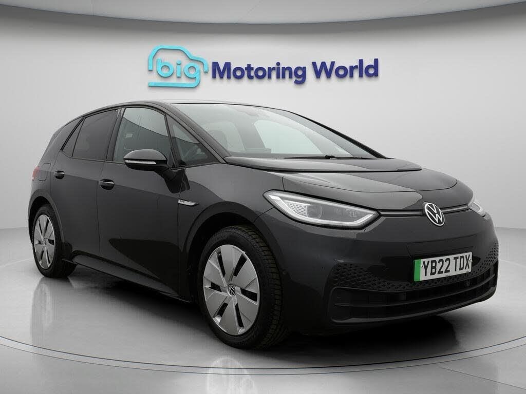 Apple CarPlay,Adaptive Cruise-Our Volkswagen ID.3 comes with optional extras worth £850. Specification includes a range of fantastic features including Apple CarPlay, Adaptive Cruise Control, Lane Assist, Android Auto, Satellite Navigation, Privacy Glass, Heated Seats, Gesture Control, Rear View Camera, Heated Steering Wheel Specification information is supplied by CAPHPI and may vary to the actual car. This data does not form any part of a buying contact. Please check specification prior to purchase in-store. The MOT is valid until March 2027, visit bigmotoringworld.co.uk for more photos, a 360 tour, service history and a free HPI report.Were BIG on peace of mind and this Grey Volkswagen ID.3 has completed our comprehensive 200 point inspection and passed all checks. Its ready for you to drive away with immediate collection in-store. We include a 90-day warranty as standard plus an option to extend for up to 3 years.Reserve this car exclusively for you, safely and securely at bigmotoringworld.co.uk, with a fully refundable £99 deposit. Test drive before you buy, with no commitment, no hassle and a completely haggle free experience. Still searching and want to see thousands more cars? We are BIG on choice with over 8000 cars to choose from.Visit our award winning web site bigmotoringworld.co.uk.Were Big Motoring World and were BIG on what matters to you.