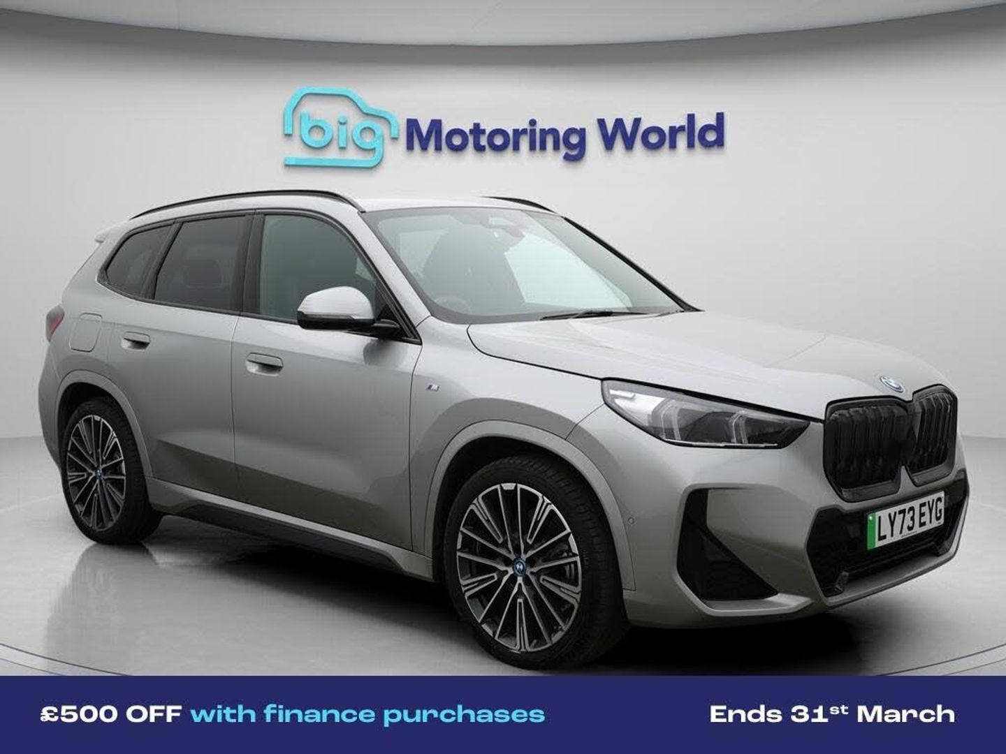 £500 towards your finance depo-Our BMW iX1 is finished in Silver. Specification includes a range of fantastic features including £500 towards your finance deposit, All Wheel Drive, Part Leather Seats, Harman Kardon Speakers, M Sport Bodykit, Privacy Glass, Heated Seats, Rear View Camera, Bluetooth, Parking Sensors Specification information is supplied by CAPHPI and may vary to the actual car. This data does not form any part of a buying contact. Please check specification prior to purchase in-store. The MOT is valid until January 2027, visit bigmotoringworld.co.uk for more photos, a 360 tour, service history and a free HPI report.Were BIG on peace of mind and this Silver BMW iX1 has completed our comprehensive 200 point inspection and passed all checks. Its ready for you to drive away with immediate collection in-store. We include a 90-day warranty as standard plus an option to extend for up to 3 years.Reserve this car exclusively for you, safely and securely at bigmotoringworld.co.uk, with a fully refundable £99 deposit. Test drive before you buy, with no commitment, no hassle and a completely haggle free experience. Still searching and want to see thousands more cars? We are BIG on choice with over 8000 cars to choose from.Visit our award winning web site bigmotoringworld.co.uk.Were Big Motoring World and were BIG on what matters to you.