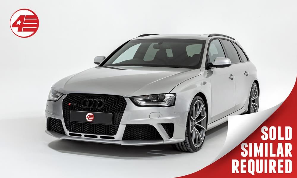 Prisma Silver metallic paintwork, Black leather upholstery, 20-inch V-spoke alloy wheels, Heated wingback RS bucket seats, Sports suspension with variable shock absorption, Quattro permanent all-wheel drive, Panoramic glass sunroof, Reversing camera, Parking sensors front and rear, Navigation system, Electric folding door mirrors, Privacy glass, Black badges and grille surround, Carbon fibre interior trim, Flat-bottom RS steering wheel, Cruise control, Electric tailgate, RS4 floor mats, Spare remote key.