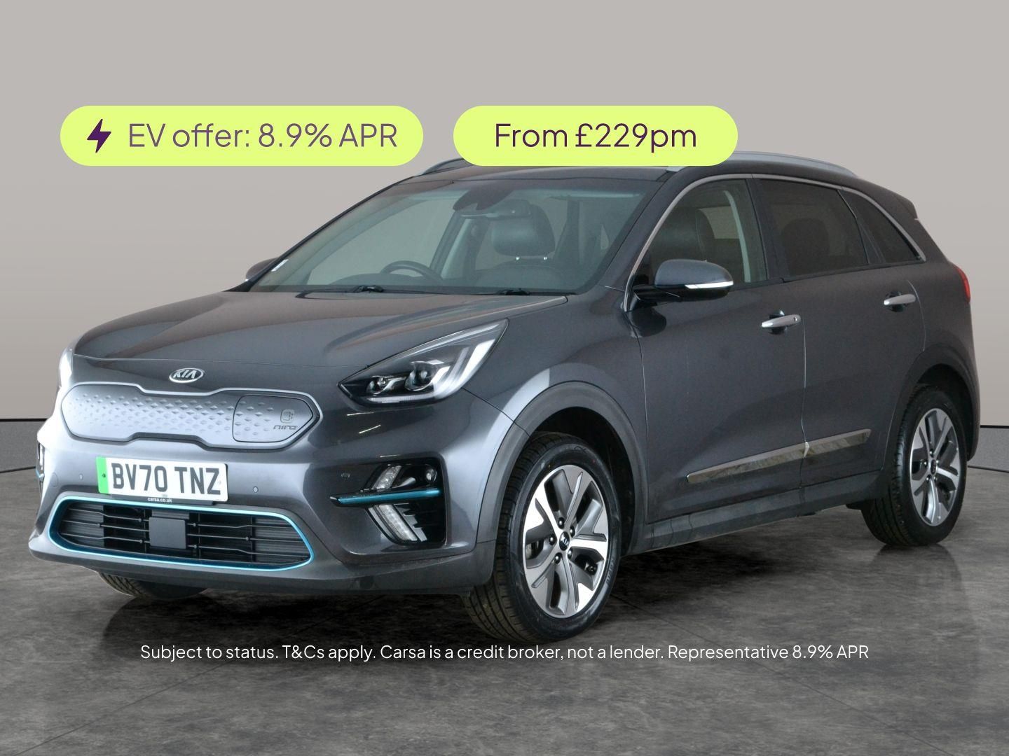 Experience comfort and innovation with this smart Kia Niro SUV in sleek grey. Enjoy premium features such as heated leather seats, a heated steering wheel and a cutting-edge JBL sound system with Apple CarPlay. Effortlessly park with a reversing camera, and drive confidently with Lane Departure Warning and regenerative braking paddles. The built-in heat pump system maximises efficiency, while LED headlights add style and visibility. Stay connected with Bluetooth audio streaming and find your way with integrated sat nav. Discover electric driving, elevated. 6 services recorded, last serviced on 19/02/2026 at 38,517 miles. MOT to 29/09/2026. Visit our website for service history, online valuation, full vehicle specification plus multiple images. Any feature/option specified here is from 3rd party data. We cannot guarantee the accuracy of any specification supplied by a 3rd party. We recommend that you physically check the specification of the vehicle on site prior to purchase. This information does not form part of the buying contract. Terms & Conditions apply. We have over 2,000 cars available from our 10 national branches, check our website to see all our stock. Our Trustpilot rating is 4.4/5 with over 9,000 reviews.